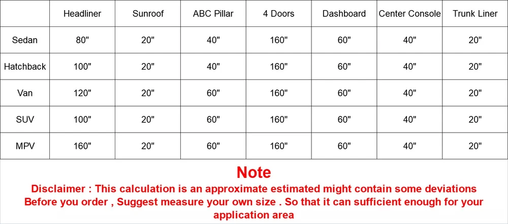 Package Includes: 98''x59'' Headliner Fabric Specification: *Material: Face Content: 100% Suede| Backing Content: 100% Polyether *Thickness: 1/9inch(3mm) *Size:98"*59"=8Ft*5Ft=250cm*150cm(About 40sqft) *Color: Black *Non-toxic:Yes *Soft Finish:Yes *Widely Use:Yes *Easy to clean and install:Yes Yetkole Best motor store Black Suede Fabric for Car Inner Roof 98"x59" - Foam Backed Repair Material 3mm Package Includes: 98''x59'' Headliner Fabric Specification: *Material: Face Content: 100% Suede| Backing Content: 100% Polyether * Thickness: 1/9inch(3mm) * Size:98"*59"=8Ft*5Ft=250cm*150cm(About 40sqft) * Color: Black * Non-toxic:Yes * Soft Finish:Yes * Widely Use:Yes * Easy to clean and install:Yes Features: ● Premium Material: The fabric is made of high quality Suede headliner with a 1/9" foam backing and has a soft smooth and clean finish on the surface of the fabric,to determine the size you need, please measure your vehicle headliner from front to back, then add 6 inches. (Note: The headliner fabric is folded for delivery, not delivered in rolls, But Don't Worry, just lay the headliner flat for a few hours and the creases will disappear.) ● Refresh Your Car: Suede Headliner Fabric can be used to repair or replace the interior of a vehicle that has been damaged by accidents, soiled by years of smoke, kids, pets or are just plain old ragged and faded from age. It can be used on automobiles, recreational vehicles or motor homes and boats. Restoring classic vehicles is a hobby of yours. ● Widely Used: Ideal for car and truck cab headliner replacement in vehicles that have a sunroof / moon roof and also great for door panels, sun visors, lining gun lockers,hunting cabins, box stands and gun blind interiors. It is also well suited for the front of foam/mesh ball caps, and anywhere else were a polyester flat knit face and foam backing upholstery application is desired ● Easy Care: Spot clean with upholstery shampoo, foam from a mild detergent, or mild dry cleaning solvent. Do not saturate with liquid. Pile fabrics may require brushing to restore appearance. Cushion covers should not be removed and dry cleaned. Note: The fabric will be shipped in folded, you can try with some methods to smooth out the wrinkles: Heat it with a steam iron on the back of the material, then it will be smooth again. Iron the back surface with steam iron with low heat (less than 90 degrees) but not dry iron. Size may be slight inaccuracy due to different batches of the products or hand measurement. Color may be little different due to monitors. Please take real product as standard. The headliner is folded for delivery,not delivered in rolls. The compatibility list is not absolutely 100% correct. It's only for reference. As the size and shape are different for each vehicle, please measure the size you need for your vehicle before purchase, to make sure you have ordered enough area of the headliner to cover. ? Item Specifics Type Headliner Headlining Fabric Upholstery Repair Replacement Theme Car/Auto Pattern Solid/Plain Material Suede Fabric Backed Foam Brand Modigt Features Coated, Colorfast, Mildew-Resistant, Waterproof Color Black Warranty 2 Year Unit of Sale Lot Placement on Vehicle Roof,Pillar,Dashboard,Sunroof,Sun Visor,Trunk,Tailgate,Console Square Size 98"*59"=8Ft*5FT=250cm*150cm=40sqft Thread Count High Package Includes 1PC 98''x59'' Headliner Fabric Surface Soft Flat Knit Thickness 3mm (1/9") Face Content 100% Suede Backing Content 100% Polyether Suitable 1 Accessories - Bags/Purses, Accessories - Hats Suitable 2 Apparel - Coat/Jacket, Car Upholstery, Crafts, Suitable 3 Cushion, Drapery, Motorcycle Upholstery, Speakers Suitable 4 Car Auto SUV Truck Caravan Pickup Van Camper RV Trailer Suitable 5 Boat,RV,Furniture,Motorcycle Seats,Yacht,Outdoor,Upholstery Other Part Number Faux Leather Roof Lining Headliner Fabric Trimmings Manufacturer Part Number Headliner Suede Fabric MPN Suede Headliner Model Panel Side Lining Ceiling Headliner Repair Fix Replacement Payment 1. It will be much appreciated that you finish your payment asap or it will make UPI(unpaid item case) on your account leading to be suspended or restricted by eBay when those UPI cases carry over to certain amount. 2. Any problems please contact us for more details. Shipping We do appreciate your purchase here. If you are astisfied with the item as well as our service, please kindly leave us a Positive Feedback to help develop our business. Thank you in advance. Returns 1. All items will be shipped to buyer's ebay address. 2. All items will be shipped within 24 working hours upon receipt of payment, and multiple items will be combined shipping. 3. In most cases, delivery takes around 3-5 business days, it's highly depended on the efficiency of the shpping carrier. If your item doesn't arrive on time, please contact us immediately for further assistance. Please note there is no local pickup service available. Contact Us 1. We care about our valued buyers, if you have any questions, our Customer Service staff will be very glad to help you. We try our best to reply your ebay message as soon as possible, please kindly allow 24 hours for us to response. 2. Our goal is to make sure you are a happy buyer and pleasant shopping with us. Please contact us before leaving any 1 or 2 star ratings, negative feedback or open any dispute. We understand the concerns and frustrations you might have, and will do our endeavor to resolve the issues. Wish you have a good shopping time~ Yetkole Best motor store DESCRIPTION PAYMENT SHIPPING RETURN POLICY CONTACT US Black Suede Fabric for Car Inner Roof 98"x59" - Foam Backed Repair Material 3mm Package Includes: 98''x59'' Headliner Fabric Specification: *Material: Face Content: 100% Suede| Backing Content: 100% Polyether * Thickness: 1/9inch(3mm) * Size:98"*59"=8Ft*5Ft=250cm*150cm(About 40sqft) * Color: Black * Non-toxic:Yes * Soft Finish:Yes * Widely Use:Yes * Easy to clean and install:Yes Features: ● Premium Materia