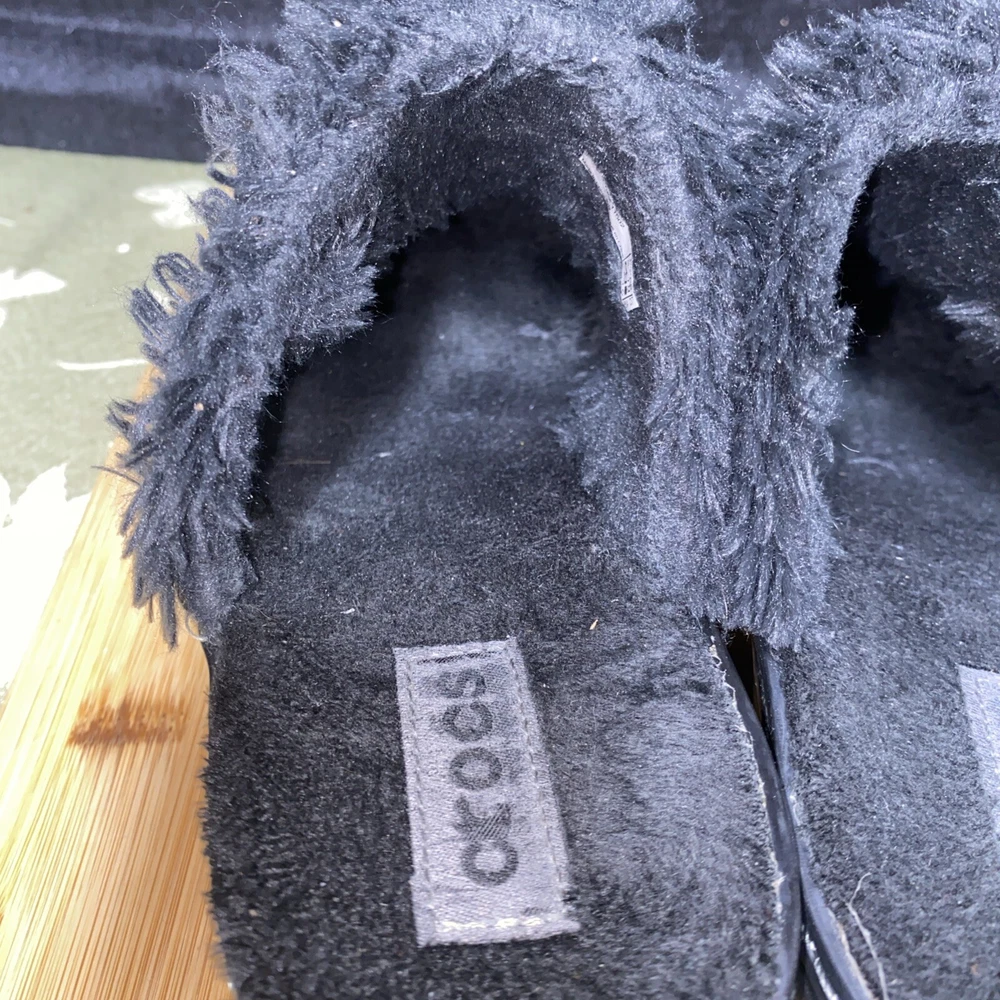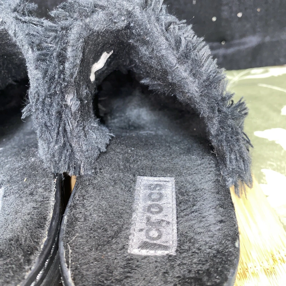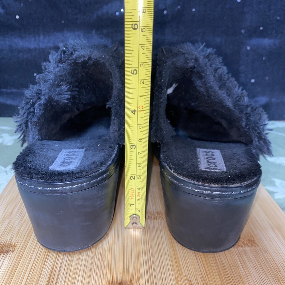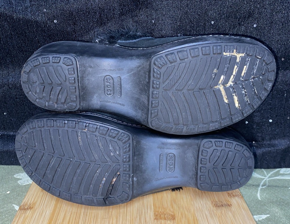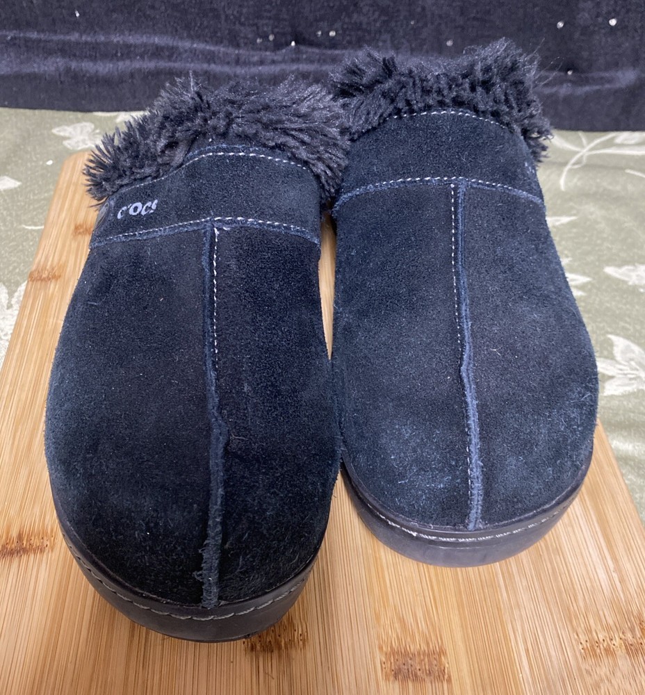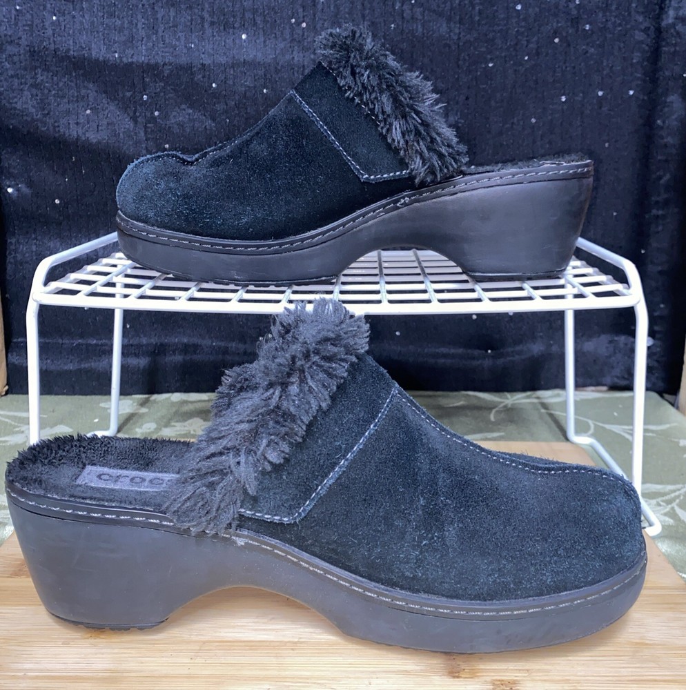 Black Suede Leather Faux Fur Lined Crocs Cobbler Mules Clog for Women Size 9