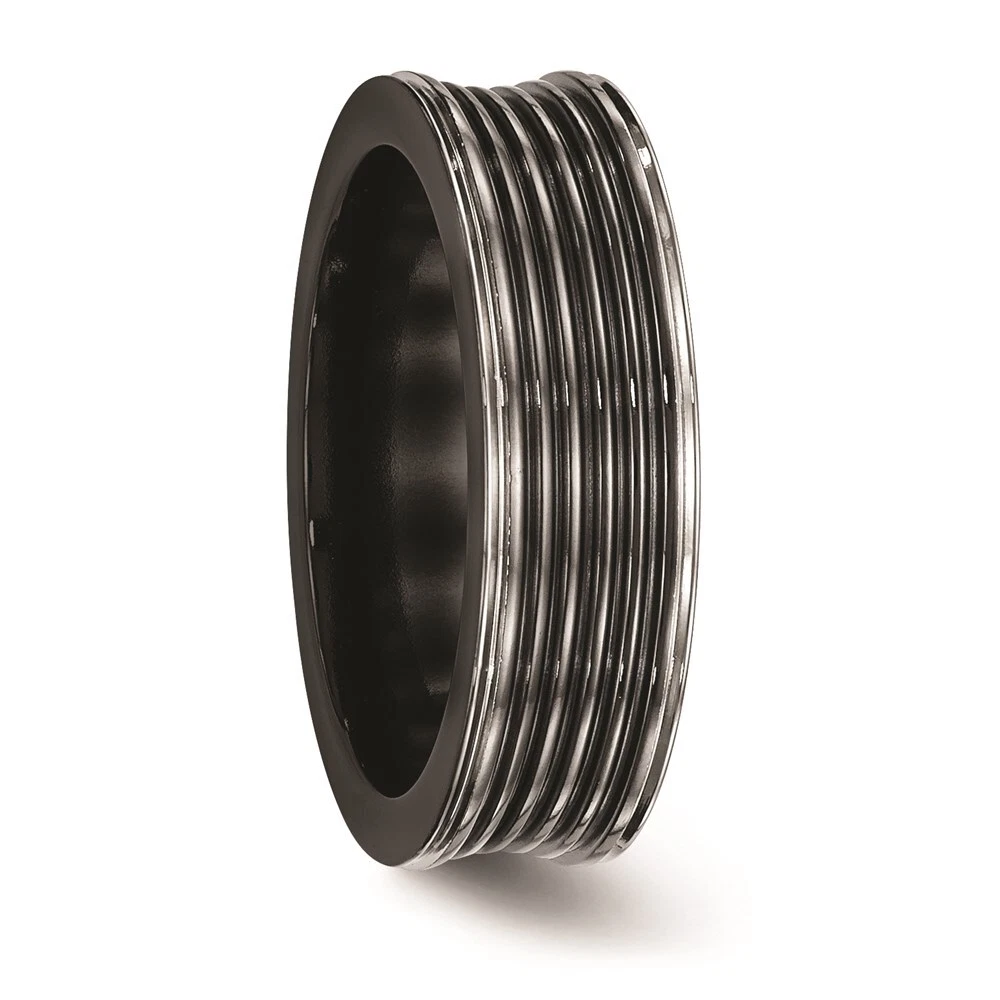 Black Titanium Polished Grooved Concave Ring Size 10 for Men 5.7gm