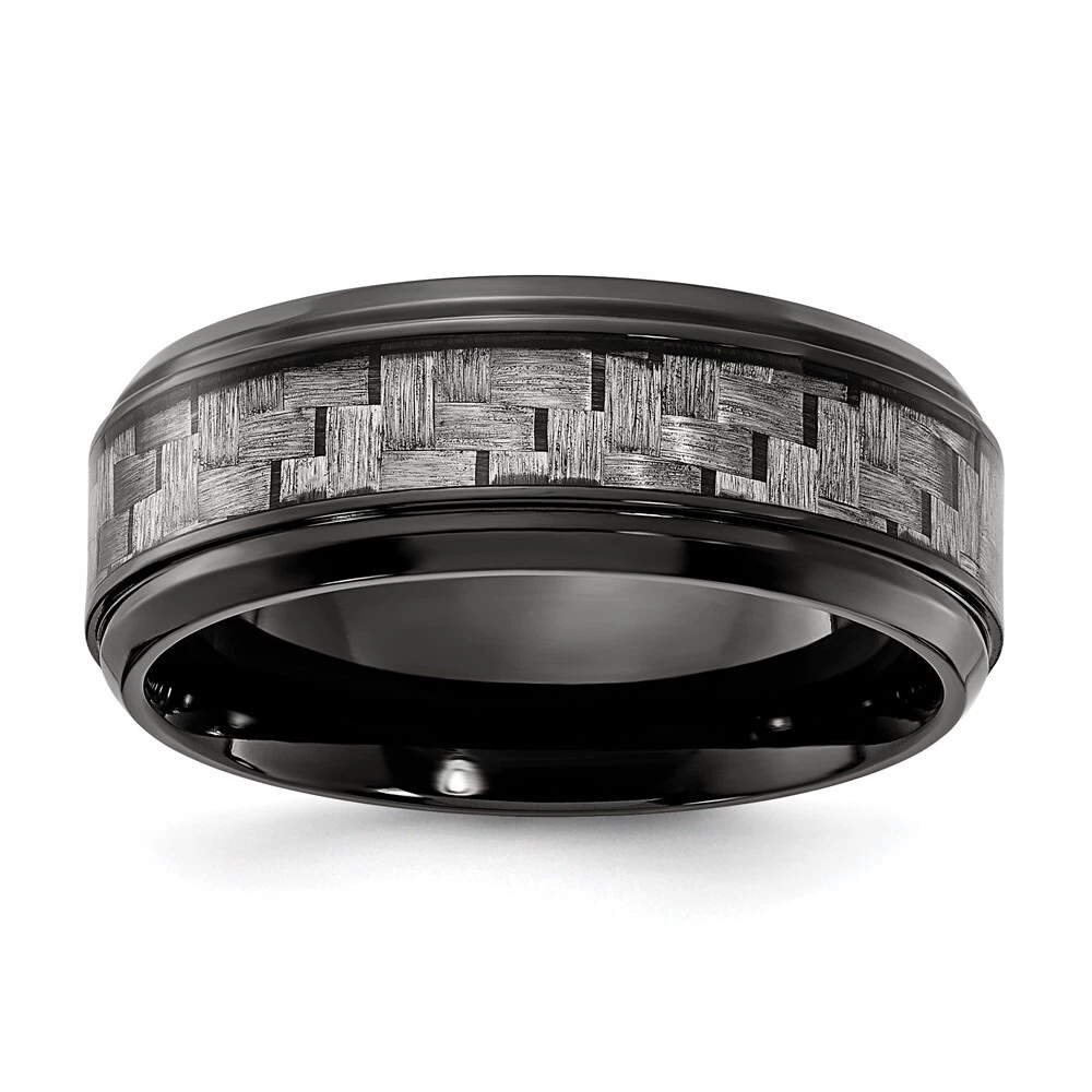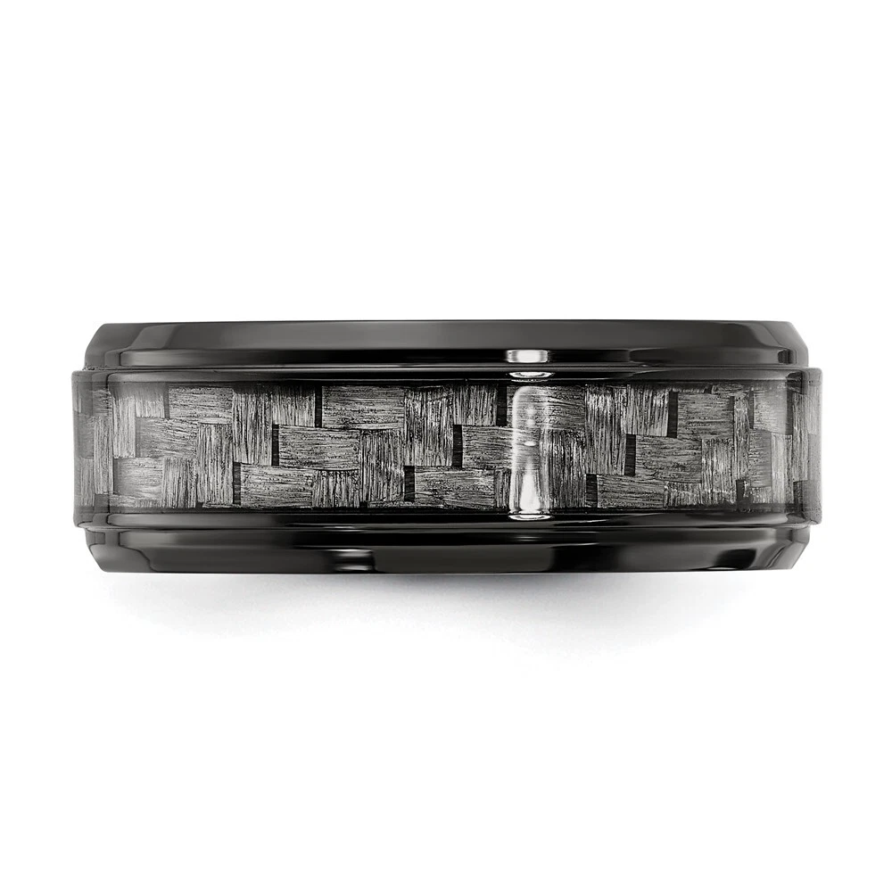 Black Titanium Polished with Grey Carbon Fiber Inlay 8.00mm Band Ring Size 11
