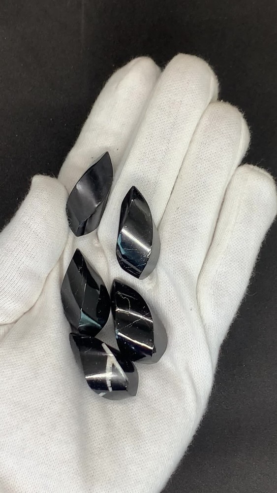 Embrace the Power of Black Tourmaline These captivating Black Tourmaline Mini Flames are not just decorative pieces; they are powerful grounding and protection crystals. Each flame-shaped piece is unique, with its own natural variations in size, shape, and color. Benefits of Black Tourmaline: Grounding: Black Tourmaline helps to connect you to the Earth's energy, providing a sense of stability and balance. Protection: It forms a protective shield around you, deflecting negative energy and EMF radiation. Stress Relief: Black Tourmaline can help to reduce stress and anxiety, promoting a sense of calm and tranquility. Chakra Balancing: It is particularly effective at balancing the Root Chakra, which is associated with grounding and security. Perfect for: Meditation and spiritual practices Home decor and energy clearing Gift-giving for crystal enthusiasts Creating jewelry or other crafts Set Includes: Five (5) Black Tourmaline Mini Flames Note: Each flame is unique and may vary slightly in size, shape, and color. These are natural crystals and may contain minor inclusions or imperfections.