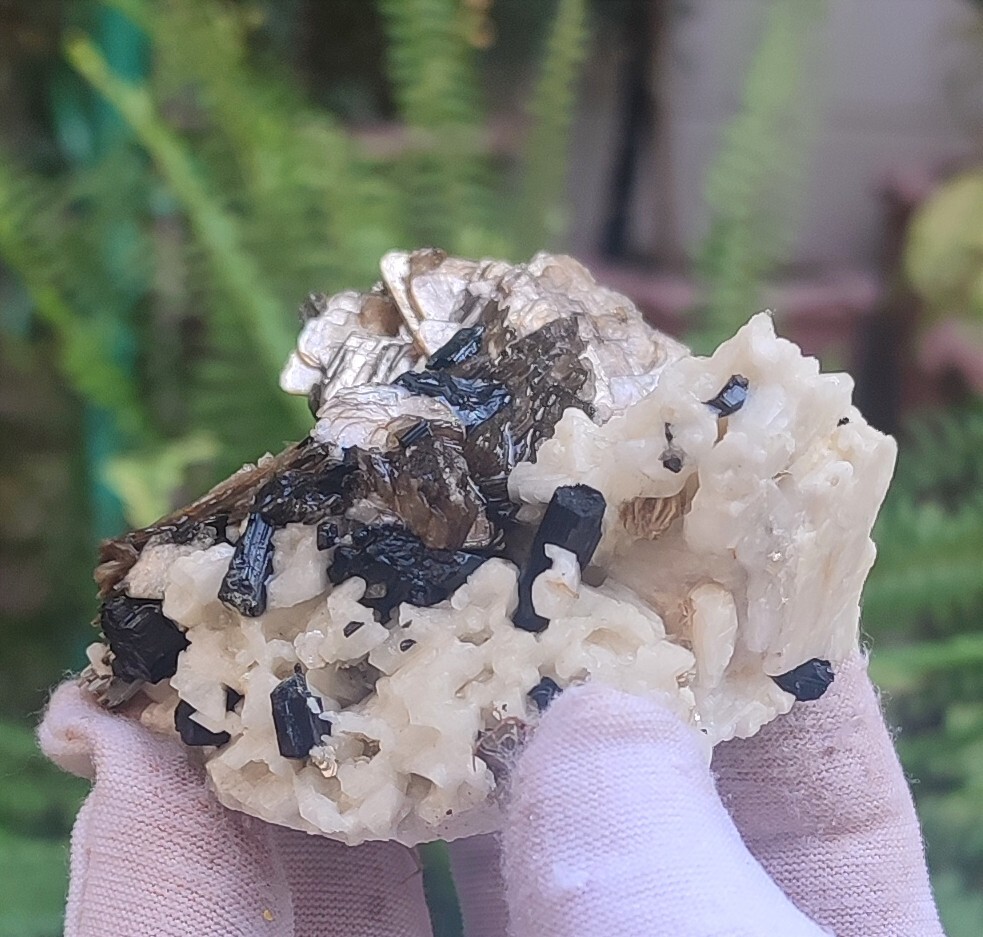Black tourmaline aka schorls on elbite & Mica crystal specimen skardu Weight: Dimension: