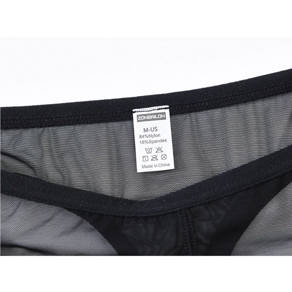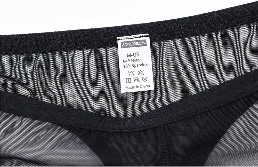 Product Description ZONBAILON--A professional men's underwear design and production manufature and somebody have given us a nickname --Underwear's Artist. We uphold the people-oriented design concept, development and production of underwear that men want. ZONBAILON Men's See Through Thong Underwear Premium Breathable Mesh Fabric 84% Nylon, 16% Spandex Sexy Sheer Mesh Thong Underwear Bulge Pouch for Balls BREATHABLE SEXY DESIGN: See through mesh fabric briefs for men ,more breathable and lightweight BULGE POUCH G-STRINGS : Comfy big pouch for balls with stereo breathable design space, shaping without restraint, very protective of genital health SOFT WAISTBAND UNDERWEAR BRIEFS FOR MEN : Reduce chafing and stimulation on your skin SEXY DESIGN THONGS BIKINI BRIEFS FOR MEN:Showing off that bubble hip & butt-flaunting and your fere will loves to see you in it FREE RETURN: If any question for sexy mens thongs g-string underwear,please feel free to contact us