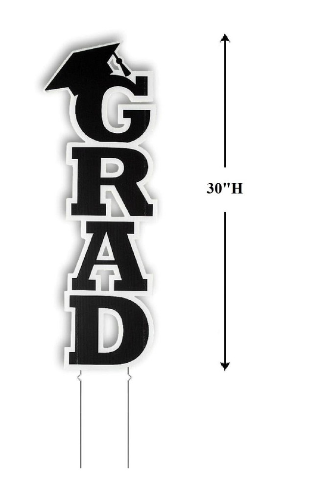 Black Vertical GRAD & Cap Yard Stake Graduation Party Plastic Sign 11"x30" #629 Black Vertical GRAD & Cap Yard Stake Graduation Party Plastic Sign 11"x30" #629 Click images to enlarge Description Black Vertical GRAD & Cap Yard Stake Graduation Party Plastic Sign 11"x30" . Let everyone know there is a "GRAD" at your house with this black bold lawn stake sign. The "G" is topped with a graduation cap and the large letters will make it really stand out in your yard. Whether for high school, college, or even moving up from elementary school to middle school, this sign is perfect for party decor. Details: Measures 30"High x 11"Long Made Of Corrugated Plastic Includes Metal Stakes Stakes Securely Into Ground Design Is On One Side Only Requires Simple Assembly Re-Usable Other Colors Available In Our eBay Store, While Supplies Last. ~Buy more than one item at the same time from our eBay store and save in shipping costs!~ (If buying different items, just put them all in your cart before paying, to get the combined shipping discount!) Shipping We use UPS SurePost, UPS, USPS and FedEx SmartPost to deliver our products to your home, depending on which method is more efficient for your order. We use suppliers for some of our orders and our suppliers will choose the service that is used for these orders. PLEASE MAKE SURE YOUR ADDRESS CAN BE VERIFIED BY USPS. Please allow 7-10 days for the item to reach your home. We cannot be responsible for items shipped to incorrect or incomplete addresses, which may result in the cancellation of your order. YES, we do combine shipping! The highest shipping cost item ships at regular price, and each additional item ships at $2.00 more in additional shipping charges. If you are buying several different items from our store, put them all into your cart before paying to get the combined shipping discount. Terms of Sale Unless otherwise noted, we accept returns up to 30 Days after your purchase, through the eBay Returns System. Please use eBay to contact us if there is any problems or issues with your order. In some cases, we order the item purchased from one of our suppliers, and it is shipped directly from our supplier to the customer. There are times when an item unexpectedly becomes unavailable from our supplier. We do our best to check on all of the items availability several timea a day. If an item is unexpectedly unavailable, we will issue a refund immediately. Contact Us Please use the message center in eBay to contact us. We check our message box in eBay several times a day. If you have any questions or concerns with your order, please feel free to contact us. We care very much about our customers being 100% happy with their purchases. We would very much appreciate you letting us resolve any issues you may have with your order by contacting us first, before taking any other unnecessary actions. Get images that make Supersized seem small. Showcase your items with Auctiva's Listing Templates! THE simple solution for eBay sellers.