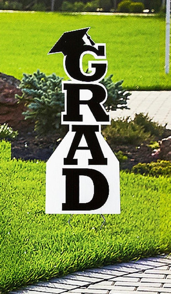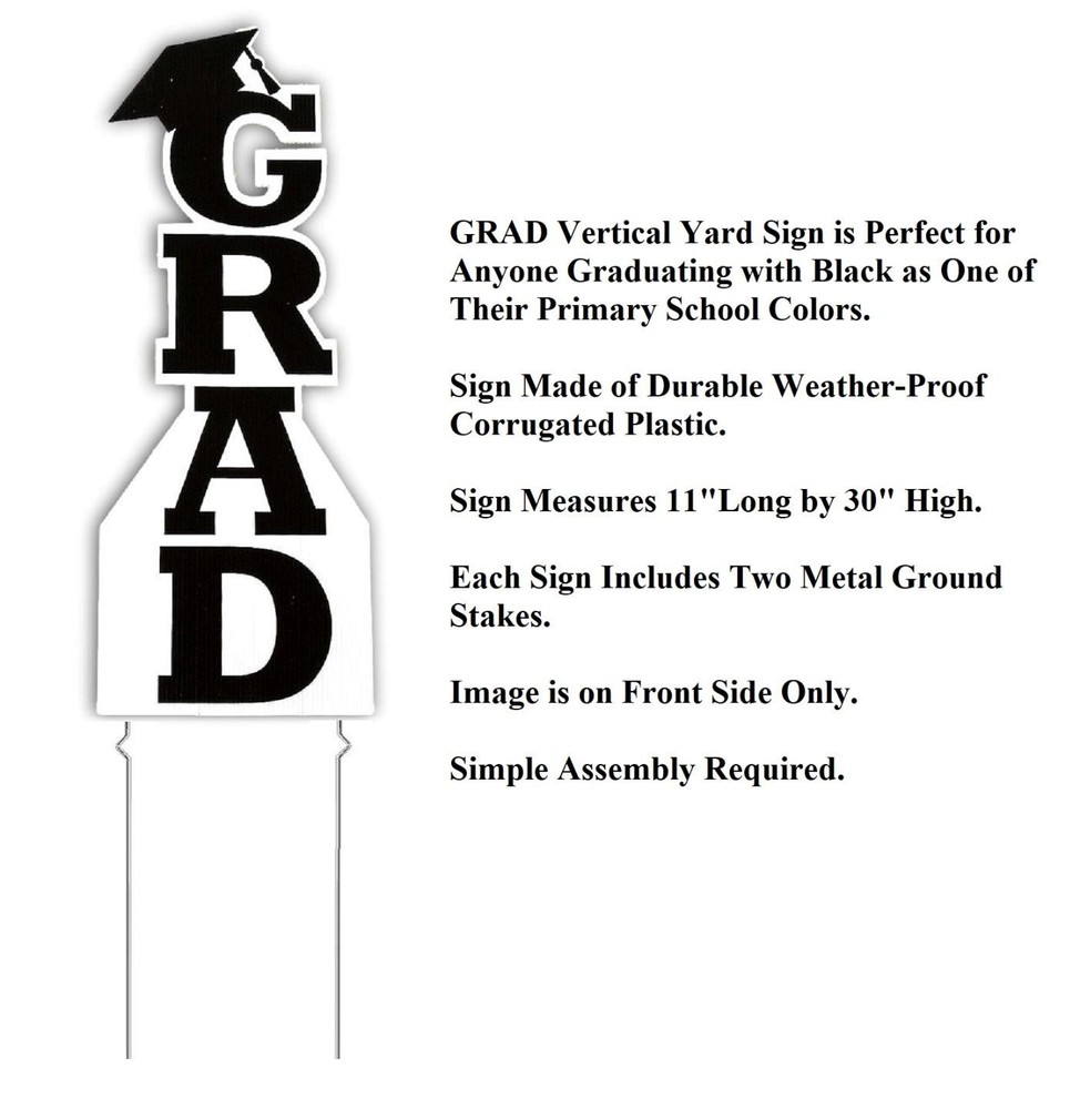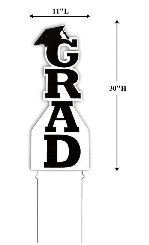 Black Vertical GRAD w/ Cap Yard Stake Graduation Party Plastic Sign 30"H #650 Black Vertical GRAD w/ Cap Yard Stake Graduation Party Plastic Sign 30"H #650 Click images to enlarge Description Black Vertical GRAD w/ Cap Yard Stake Graduation Party Plastic Sign 30"H. Dress up your lawn for a graduation party or just show off how proud of your graduate you are with this black colored "GRAD" yard stake. The top of the "G" has a motarboard grad cap and this vertical GRAD sign makes a bold statement in celebrating your graduate. Whether for high school, college, or even moving up from elementary school to middle school, this sign is perfect for party decor. Details: Measures 30"High x 11"Long Made Of Corrugated Plastic Includes Metal Stakes Stakes Securely Into Ground Design Is On One Side Only Requires Simple Assembly Re-Usable Other Colors Available In Our eBay Store, While Supplies Last. ~Buy more than one item at the same time from our eBay store and save in shipping costs!~ (If buying different items, just put them all in your cart before paying, to get the combined shipping discount!) Shipping We use UPS SurePost, UPS, USPS and FedEx SmartPost to deliver our products to your home, depending on which method is more efficient for your order. We use suppliers for some of our orders and our suppliers will choose the service that is used for these orders. PLEASE MAKE SURE YOUR ADDRESS CAN BE VERIFIED BY USPS. Please allow 7-10 days for the item to reach your home. We cannot be responsible for items shipped to incorrect or incomplete addresses, which may result in the cancellation of your order. YES, we do combine shipping! The highest shipping cost item ships at regular price, and each additional item ships at $2.00 more in additional shipping charges. If you are buying several different items from our store, put them all into your cart before paying to get the combined shipping discount. Terms of Sale Unless otherwise noted, we accept returns up to 30 Days after your purchase, through the eBay Returns System. Please use eBay to contact us if there is any problems or issues with your order. In some cases, we order the item purchased from one of our suppliers, and it is shipped directly from our supplier to the customer. There are times when an item unexpectedly becomes unavailable from our supplier. We do our best to check on all of the items availability several timea a day. If an item is unexpectedly unavailable, we will issue a refund immediately. Contact Us Please use the message center in eBay to contact us. We check our message box in eBay several times a day. If you have any questions or concerns with your order, please feel free to contact us. We care very much about our customers being 100% happy with their purchases. We would very much appreciate you letting us resolve any issues you may have with your order by contacting us first, before taking any other unnecessary actions. Pictures sell! Auctiva offers Free Image Hosting and Editing. 300+ Listing Templates! Auctiva gets you noticed! The complete eBay Selling Solution. Track Page Views With Auctiva's Counter