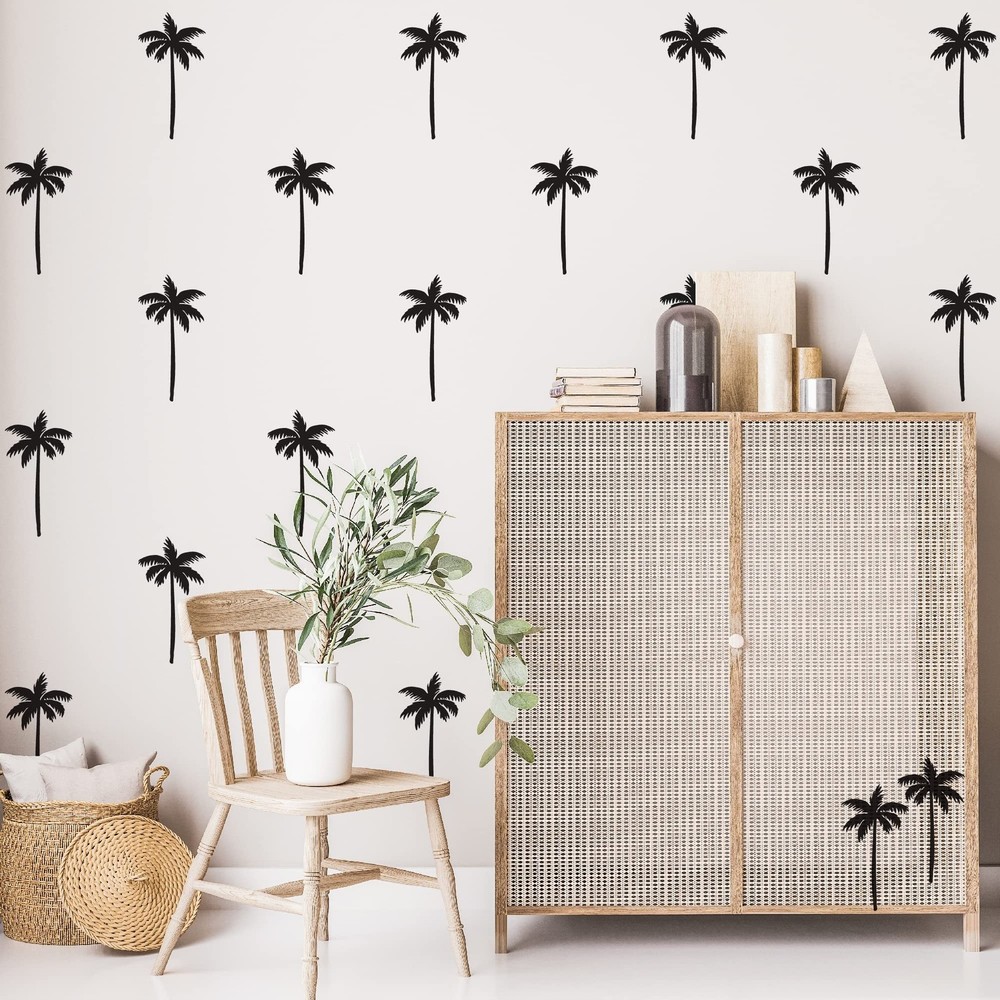 A Room with Black Vinyl Palm Tree Wall Decals, Peel and Stick Modern Wall Stickers for Nursery Kids Room, Bedroom Living Room Home Wall Art Decor Product Details Brand: SHYJSHYJ Color: Black Item dimensions L x W x H: 14.5 x 11.8 x 0.5 inches Recommended Uses For Product: Wall Theme: Modern,Palm Tree Cartoon Character: Palm Tree Special Feature: Waterproof, Removable, Fade Resistant Number of Pieces: 24 Style: 现代 Age Range (Description): Kid Brand: SHYJSHYJ Color: Black Item dimensions L x W x H: 14.5 x 11.8 x 0.5 inches Recommended Uses For Product: Wall Theme: Modern,Palm Tree Cartoon Character: Palm Tree Special Feature: Waterproof, Removable, Fade Resistant Number of Pieces: 24 Style: 现代 Age Range (Description): Kid Reusability: Single Use Item Form: Sheet Pattern: Tree Indoor/Outdoor Usage: Indoor Finish Type: Matte Number of Items: 24 Target Audience: Children Product Dimensions: 14.5 x 11.8 x 0.5 inches Item Weight: 4.8 ounces Manufacturer: SHYJSHYJ Date First Available: September 13, 2022 Easy peel&stick. Removable and no residue left Simple Design, perfect for nursery walls, bedroom, living room, kitchen, bathroom, office, dorm wall decor Made of Premium Matte Finish Viny Material. Waterproof, No Fade and lasting over 7 years. Apply to any surface as well as textured surface. Not only for walls. Great to stick on your door, windows, refrigerator, doors, glass, metal, wood, furniture, floors. Includes FOUR Large 14 inch (W) x 11 inch (H) sheets, contains 24pcs trees. Arrived in a Very solid Beautiful Cardboard Envelope That Has a Snap to Secure Decals And Keeps Decals from Bending.