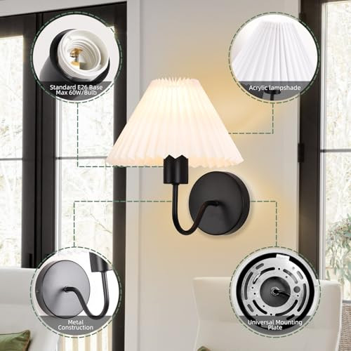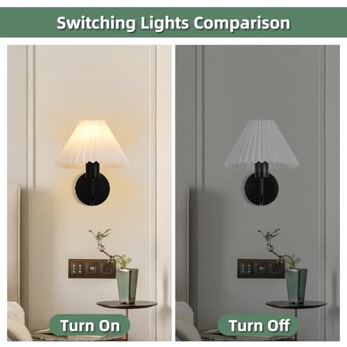 1. Absolutely love these sconces! The sleek black gooseneck and crisp white pleated shade add such a stylish touch to my bedroom. The light is soft and warm, perfect for creating a cozy vibe. Super easy to install, and they arrived way faster than expected. The seller is reliable, and the quality feels premium. Great for any room—highly recommend!