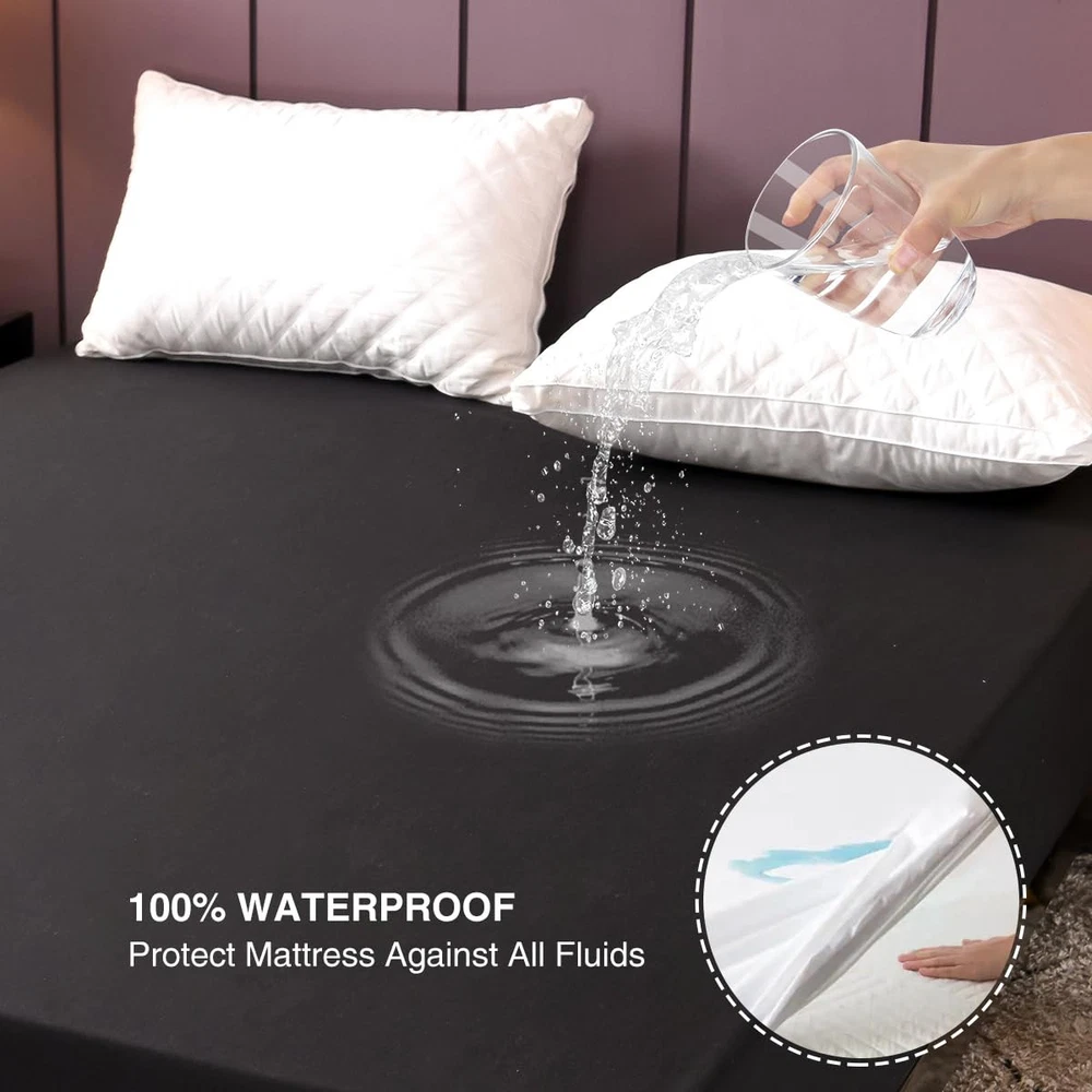 100% Waterproof -- Adopted advanced TPU technique, waterproof mattress protector is waterproof and breathable.The TPU barrier protects your valuable mattress from spills and accidents.It's great for those who have , pets, or inconvenience, new mom also need it Fitted Dimension-- Fits Queen size mattress perfectly with dimensions 60 inches by 80 inches,14 inches deep pocket.The four sides elastic pocket completely wrap the mattress and firmly stays in place even when a strong move Comfy & Noiseless-- Mattress protector made of premium fabric surface is softer and more comfortable than ordinary fabric protectors.It's breathable but durable meanwhile,making your bed skin-friendly and noiseless.It doesn’t make any crinkly noises when you sleep on it offering your family a high quality and cozy slumber Multi-color Options--Compared to traditional white waterproof mattress protector, we have more dark color choice, you can match different colors according to the pattern of your comforter. Easy Care-- The mattress protector is machine washable with cold water, Tumble dry low, do not dry clean, do not bleach, do not iron,can be washed several times