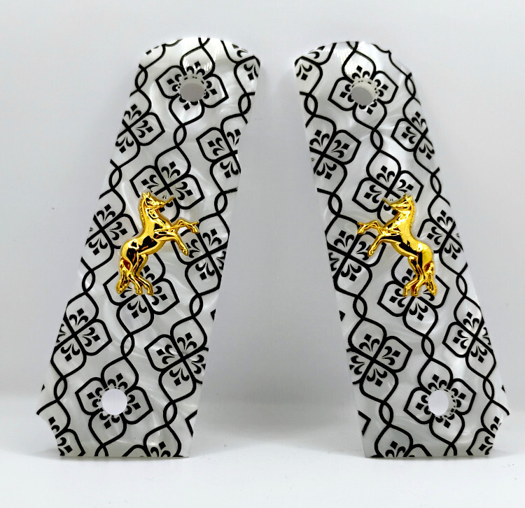 These grips instantly upgraded my 1911 with a sleek, classy look! The black and white pearl resin has a gorgeous shine and fits perfectly. They feel solid in hand with just the right texture—not too slick, not too rough. Installation was quick since they matched my frame exactly. For the price, they’re a fantastic way to give your pistol a premium touch without breaking the bank. Highly recommend if you want a sharp, custom appearance!