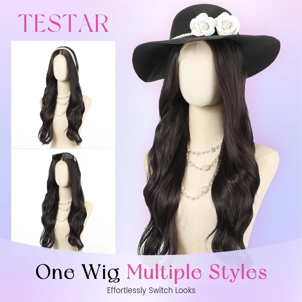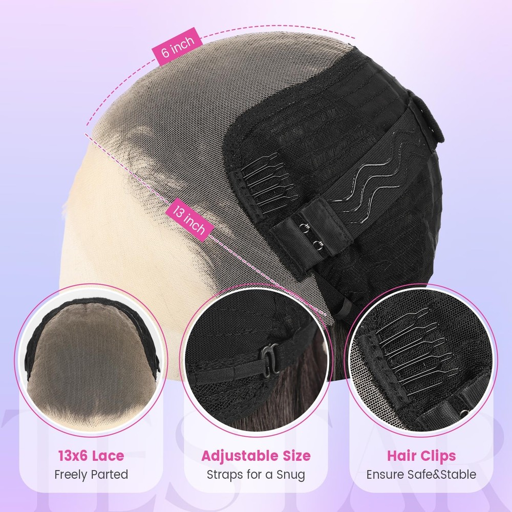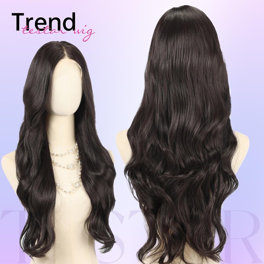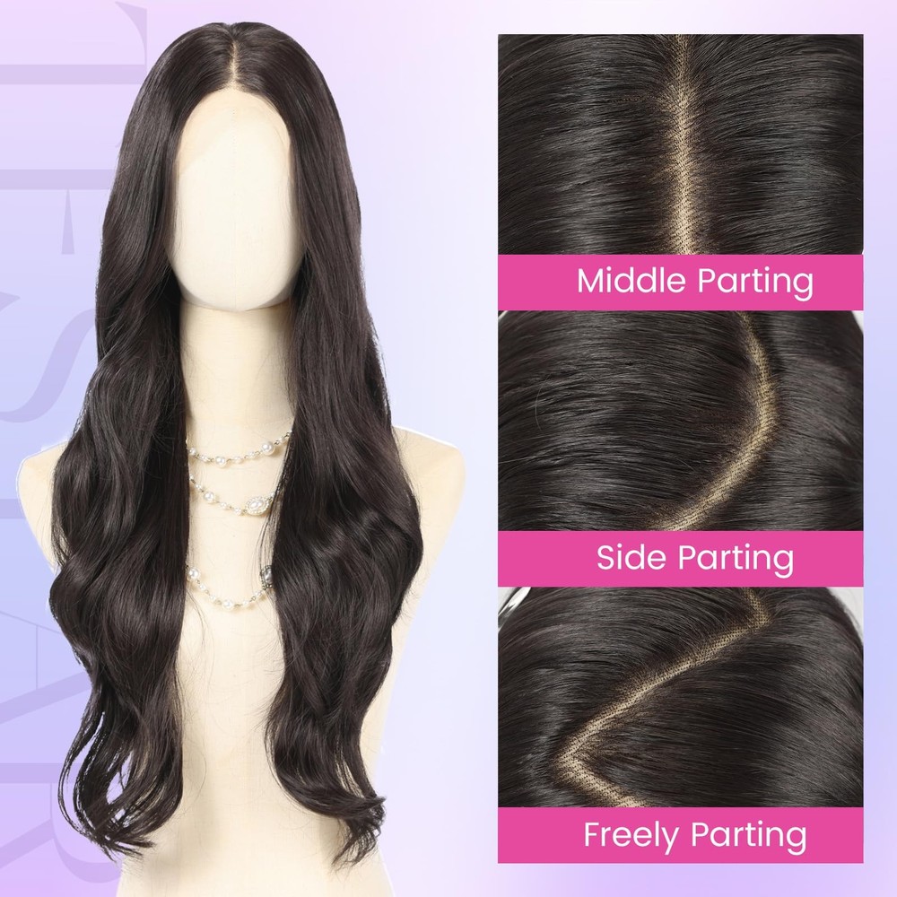 How To Wear the wigs? - Comb your own hair into a ponytail or updo - Put on the wig cap and make sure your own hair in it - Wear the wig on,the hooks are towards back.You could also adjust the hooks to the right size - Move the triangular cap tip on both sides to your temple - Comb the hair with your fingers to the style you like.You could also use spray and hair tools.The wig for black women is suitable for many occasions, perfect for daily use, Christmas, Halloween, concerts, parties, weddings, dates, travel. 【Lace Front Wig Features】This 28 inch wavy lace wig features a natural black color that showcases natural, tangle-free synthetic fibers, mimicking the softness and shine of human hair wig. It provides a perfect and elegant look for any occasion.Just cut the lace you can get natural hairline, beginner friendly. 【Effortless 13x6 Lace Wig Design】This long lace front wig with natural hairline features a 13x6 HD lace front and a breathable mesh cap, creating a seamless, natural hairline that blends beautifully with all skin tones. The long glueless wig design ensures easy application and a secure fit. 【Durable and Stylish Lace Wig】Made from premium synthetic fibers, the13x6 lace wigs is designed to be lightweight, durable, and tangle-resistant. The black lace wig 250g, 28 inch-long tresses and full density create a long-lasting, luxurious, natural look. The package includes a box, 1 hair net, and 1 false eyelashes. 【Comfortable and Adjustable Fit】The dark black wig provides a customizable fit for this middle part synthetic wig, ensuring all-day comfort. With an elastic cap (23.5 inch Average Breathable Wig Cap) adjustable straps, a natural hairline, and free-parting construction, you can easily create the wig style you want, free-part , side-part ,high-ponytail, more styles depends on your like. 【Confidence for Every Occasion】Whether it's for daily wear, weddings, parties, or travel, this versatile long black lace frontal wig is the perfect accessory to enhance your style and boost your confidence. You deserve this beauty- the wavy lace wigs !