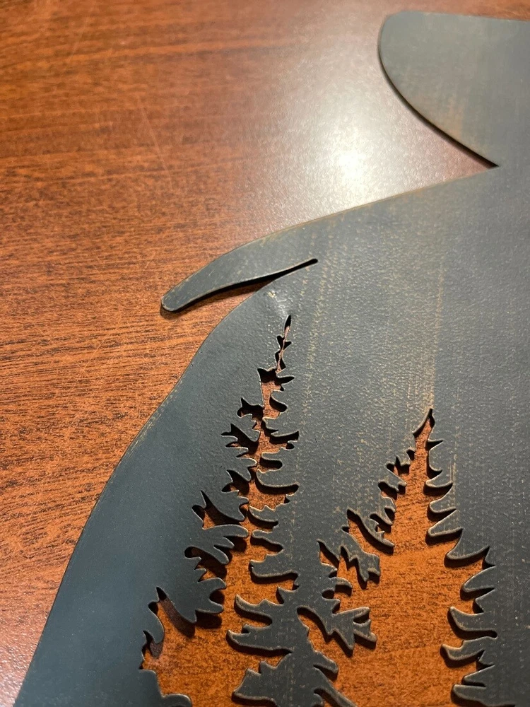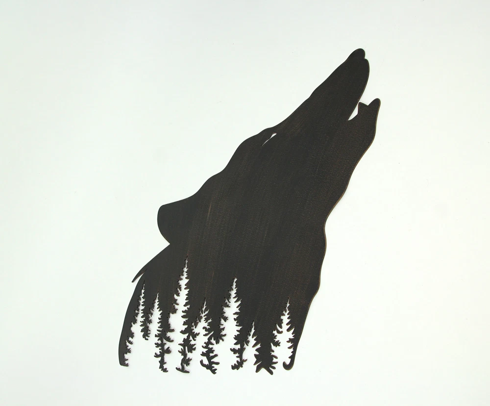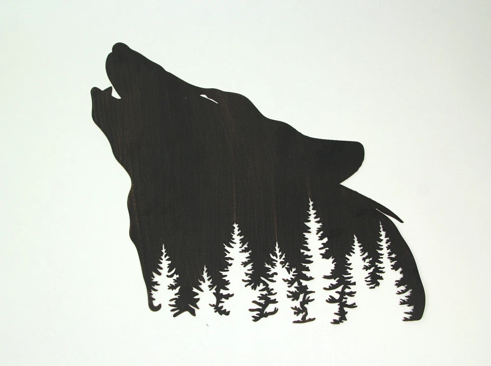 NOTE: DUE TO DEFECTS IN THE FINISH this item is being sold at a reduced price. Please see last photo for damages/defects. Bring home a denizen of the forest with this howling wolf wall sculpture. Laser cut from high quality metal for a highly detailed and long lasting piece of art, this wall plaque is a great way to add some forest flair to your home. Measuring 17 inch long, 0.25 inch wide, 17 inch high, this wall art is perfect as an accent or centerpiece for your living room, dining room, bedroom, kitchen or den. A great piece of lodge decor for your home or as a gift for forest loving friends and family. Our eBay Store About Us Add to Favorite Sellers Black Wolf Laser Cut Metal Wall Art Hanging Forest Room Decor Lodge Decoration NOTE: DUE TO DEFECTS IN THE FINISH this item is being sold at a reduced price. Please see last photo for damages/defects. NOTE - DUE TO DEFECTS IN THE FINISH this item is being sold at a reduced price. Please see last photo for damages/defects. DURABLE MATERIAL - Crafted of High Quality Metal For Years of Maintenance Free Display DETAILED CUT - Laser Cut Details For A Stunning Wall Sculpture LODGE DECOR - Great For Your Living Room, Kitchen, Bedroom, or Den OVERALL SIZE - 17 Inch Long, 0.25 Inch Wide, 17 Inch High NOTE: DUE TO DEFECTS IN THE FINISH this item is being sold at a reduced price. Please see last photo for damages/defects. Bring home a denizen of the forest with this howling wolf wall sculpture. Laser cut from high quality metal for a highly detailed and long lasting piece of art, this wall plaque is a great way to add some forest flair to your home. Measuring 17 inch long, 0.25 inch wide, 17 inch high, this wall art is perfect as an accent or centerpiece for your living room, dining room, bedroom, kitchen or den. A great piece of lodge decor for your home or as a gift for forest loving friends and family. Product Details Color Black Height 17 Length 17 Weight 1.6 LB