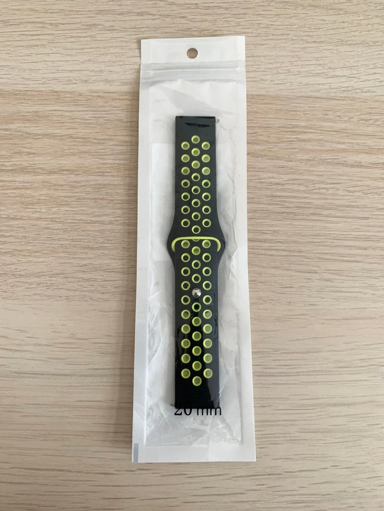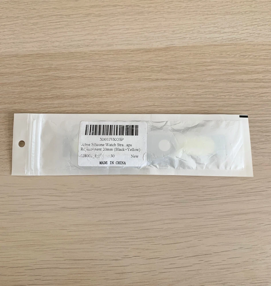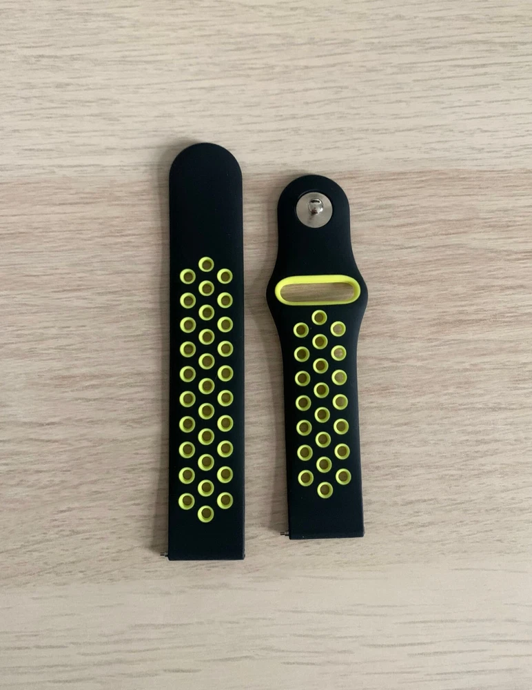 A unique brand new black and yellow watch strap that has never been used and is still in original packaging. Length: 21 cm / 8.3 inches. Width: 2 cm / 0.8 inches.