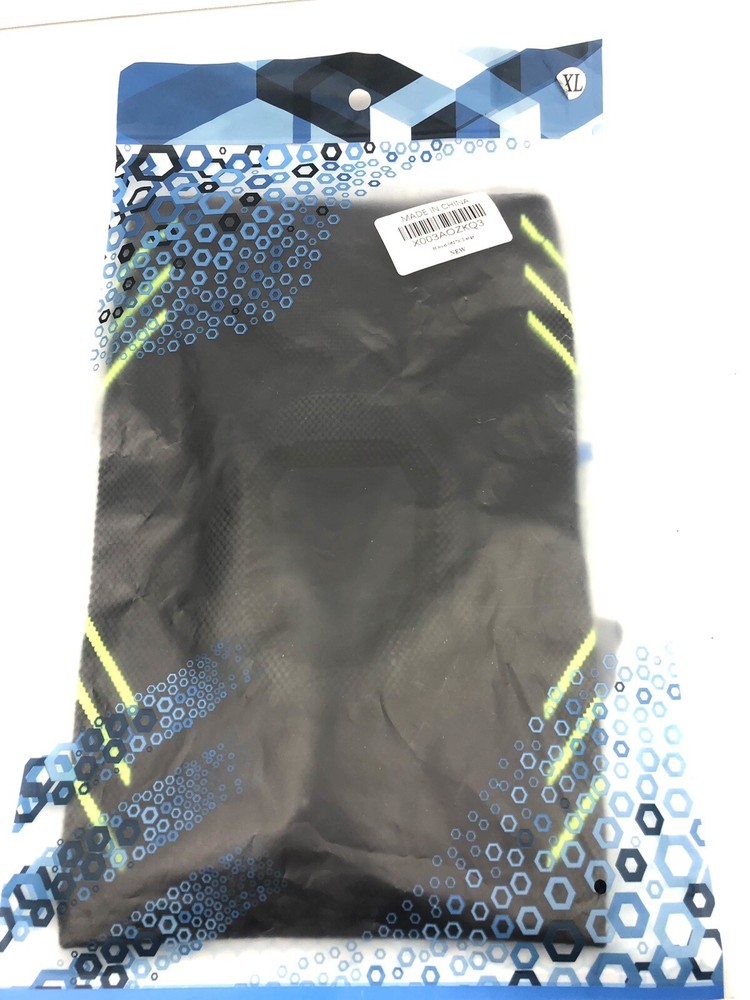 Patellar Knee Gel Pad Compression Sleeve, Black Yellow Stretch Fabric Athlete.
