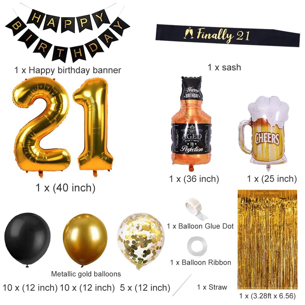 21st Birthday Decorations for Him Men, Happy 21 Bday Decor Black and Gold for Her Women Party Supplies 21st Birthday Party Supplies: This black gold theme birthday decorations are indeed a perfect 21st birthday gift for her or him . The birthday party kit is suitable for birthday, the birthday party decor, will definitely bring more joy to your party. Quality 21st Birthday Decorations: The 21st birthday kits are made of safe, eco-friendly premium material: a set of recyclable birthday banner, long-lasting thick balloons, a gold curtain as a shining backdrop and a sash to indicate your important 21st birthday is coming. Happy 21st Birthday Decor Set Includes: 1 x Happy Birthday banner, 10 x metallic gold balloons (12 inch), 10 x black balloons(12 inch), 5 x gold confetti balloons (12 inch), 1 x gold number balloon "2" (40 inch), 1 x gold number balloon "1" (40 inch), 1 x gold fringe curtain (3.28 X 6.56ft), 1 x "Finally 21 "sash, 1 x roll glue dot, 1 x ribbon, 1 x straw. Easy to Use 21st Birthday Decor: No need to assemble, just use a straw to blow the foil balloon and a pump for the latex balloons. Our Promise for 21st Bday Decoration: To celebrate a new life period, it's worth preparing a distinctive 21st birthday party for yourself or your family. Also, each 21st birthday decorations set has been carefully inspected to ensure a satisfactory 21st birthday decoration for her or him. Every One Deserves A Memorable 21st Birthday 21st birthday is an extremely important event. Turning 21 is the indication of a brand new life period and thus bringing a unforgettable party to yourself or the person you love on her or his 21st birthday is necessary. Awesome 21st Birthday Decor Kit: 1 x Happy Birthday banner 10 x metallic gold balloons (12 inch) 10 x black balloons(12 inch) 5 x gold confetti balloons (12 inch) 1 x gold number balloon "2" (40 inch) 1 x gold number balloon "1" (40 inch) 1 x gold fringe curtain (3.28 X 6.56ft) 1 x "Finally 21 "sash 1 x roll glue dot 2 x ribbons 1 x straw Our 21st birthday decorations set is black gold themed, aiming to make your or your family's 21st birthday party a beautiful, decorative and fun fair. May you or your family enjoy a happy 21st birthday party! SHIPPING Domestic Buyers - We have confidence in our products, but if you are not fully satisfied please contact us within 30 days of purchase and you will get full refund. - We ship within 3 business days of payment, usually sooner - We offer FREE shipping on all orders! - We only ship to the lower 48 states, no APO/FPO addresses or PO Boxes allowed International buyers – please note: Import duties, taxes, and charges aren't included in the item price or postage cost. These charges are the buyer's responsibility. - Please check with your country's customs office to determine what these additional costs will be prior to bidding or buying. * Order Cancellation Policy ** You can return a product for up to 30 days from the date you purchased it. 1. The seller reserves the right to cancel the special case only due to eBay cancellation fee. 2. The decision of seller is the final. 3. The seller will respond to the cancellation request within 2 business days. Please wait for the result of cancellation. 4. In case the cancellation is not completed by some reasons, the buyer can follow the options below to get the refund. 4.1 The buyer can reject the item when it arrives. 4.2 The buyer can send the item back to the seller within 30 days If the buyer receives item (USA Shipment ONLY). The seller will provide the FREE return label to the buyer when the buyer opens " Return Item" case on eBay by using the reason as "Change my mind" ONLY. 5. When buyer has placed the order. The order will be processed and completed by automatic warehouse system within 5 minutes. In case that buyer sends the cancellation request after 5 minutes of placing the order, the request will be rejected. **Sending direct message to cancel the order is not allowed for every case.* Return Policy For the return case - If buyer would like to return the items for refund or replacement, please CONTACT SELLER to receive the free return label from seller. The refund or replacement will be processed with the tracking number of return label which is provided by seller only. The other ways of return which are not approved by seller will not be processed for the refund or replacement.