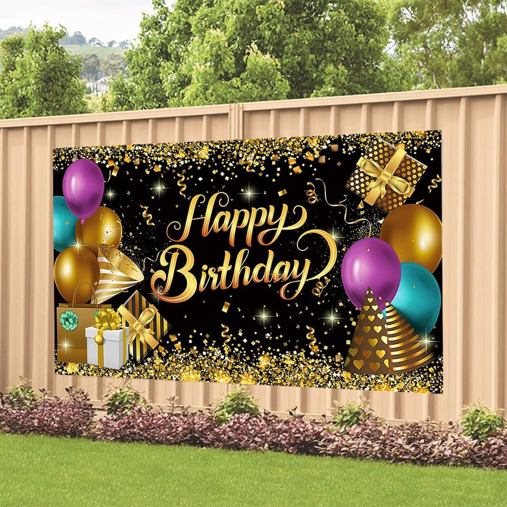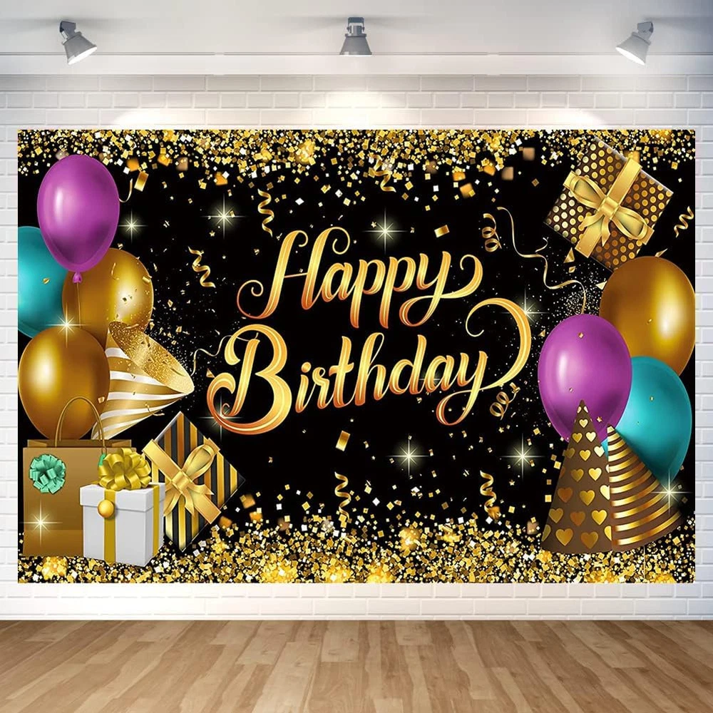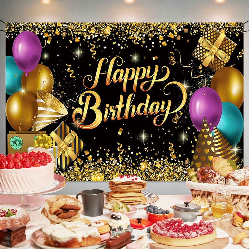 【Package Includes】You will get 1 piece of black gold backdrop, the size is about 70.8 x 47.2 inches, comes with a 20 ft white rope. Big enough to decorate your as a welcoming front door backdrop, and nicely satisfy all the photo requirements. 【Excellent Materials】The black and gold banner is mainly made of quality polyester fabric with vibrant printing, reliable and sturdy, washable and reusable, lightweight and not easy to fade, you can fold it up to easy to store for next time use after using. 【Unique Design】The black and gold backdrop is full of glitter balloons elements. It saves time and saves energy in birthday decorating, can make your big party glam and fab. 【Easy to Assemble】There are 4 copper holes respectively distributed in the 4 corners of the photography background, coming with a 20 ft white hanging rope, you can easily hang it through the copper grommets and display it anywhere you want to decorate. 【Perfect Decor】Black and gold glitter backdrop is suitable for birthday party, home decor, indoor or outdoor decoration as a photography background. The eye catching details and vibrant colors will help you light up your party and leave a deep impression on your guests. Black and Gold Glitter Birthday Party Backdrop Black and Gold Happy Birthday Banner Photography Background for Home Decorations Party Supplies 70.8 x 47.2 Inch Package Includes: 1 x 70.8 x 47.2 Inch happy birthday backdrop 1 x 20 ft white hanging string 【Unique Birthday Design】The happy birthday backdrop is full of birthday party elements. It saves time and saves energy in birthday decorating, can make your big party glam and fab. 【Easy to Assemble】There are 4 copper holes respectively distributed in the 4 corners of the happy birthday photography background, coming with a 20 ft white hanging rope, you can easily hang it through the copper grommets and display it anywhere you want to decorate. 【Perfect Birthday Decor】The backdrop is suitable for birthday party, home decor, indoor or outdoor decoration as a photography background. The eye catching details and vibrant colors will help you light up your party and leave a deep impression on your guests.