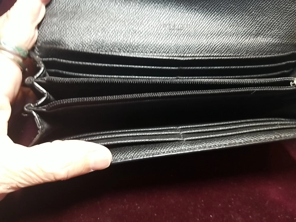 Accessorize with sophistication using this Black & Tan Wallet, a versatile addition to your everyday essentials. Designed for the modern woman, this wallet merges style with functionality, offering a sleek design in a color palette that complements any outfit or occasion. Whether it's for daily use or as a chic statement piece, this wallet caters to a variety of needs. With its ample space for cards, cash, and coins, it ensures that your belongings are organized and within easy reach, making it an indispensable companion for the woman on the go. DON'T KNOW ANYTHING ABOUT WALLET TOOK PICTURES OF EVERYTHING I CAN