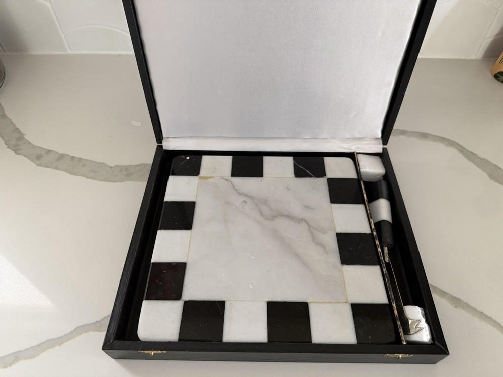 Genuine White Gray Marble Cheese Cutting Board 6” & Slicing Knife