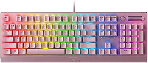 Connectivity Technology: wired, USB Standing screen display size: 15.6 UPC: Does Not Apply Brand: Does Not Apply gtin13: Does Not Apply Item Length: 1 Keyboard Description: Gaming EAN: Does Not Apply Color: Quartz Pink Number of Keys: 104 Style: BlackWidow V3 Type: Does Not Apply Keyboard backlighting color support: RGB Size: Keyboard Pattern: Clicky Switches Customer Reviews: 4.7 out of 5 stars Recommended Uses For Product: Gaming Special Feature: Magnetic MPN: Does Not Apply Item Width: 1 Compatible Devices: PC Item Height: 1