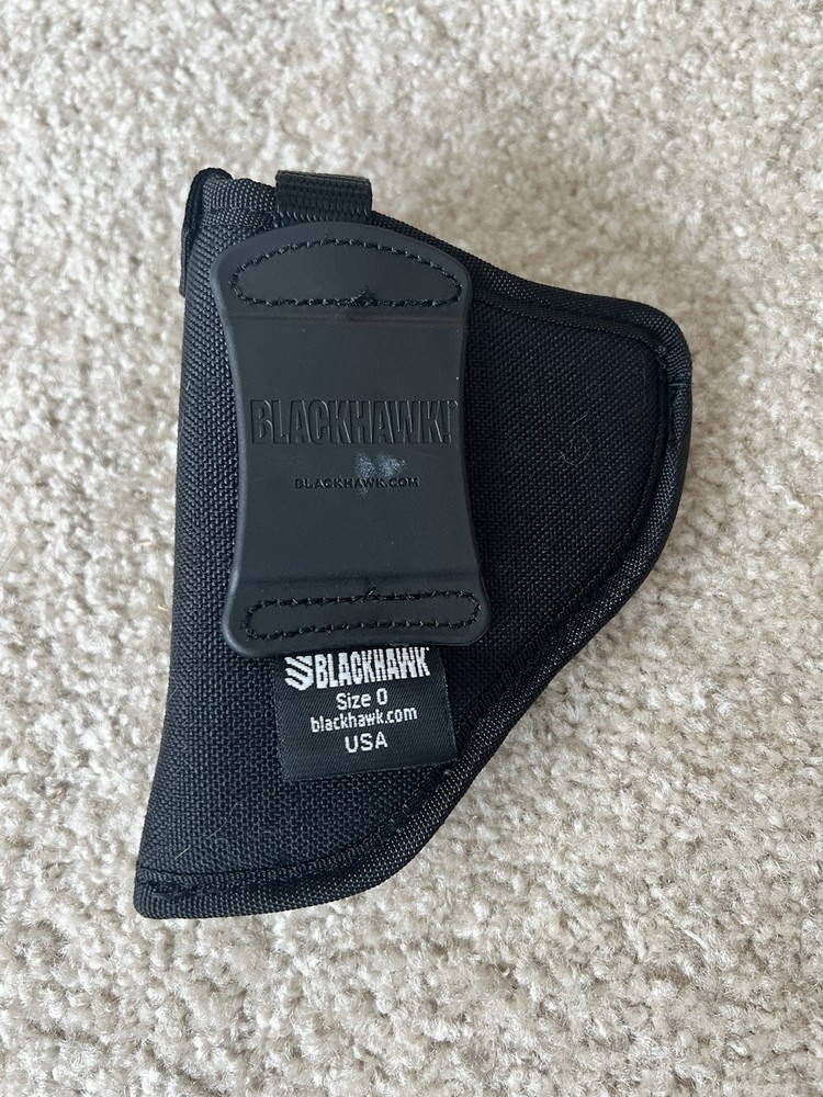 This is a BLACKHAWK! hip holster designed for right-handed shooters, specifically for a 2"-3" barrel small to medium frame revolver. It is made of black nylon, suitable for hip carry. The holster is intended for revolver use and is sized as Size 00 for left-hand draw. This is for Outside Waistband (OWB) Made in the United States. If you need more pictures, feel free to ask!