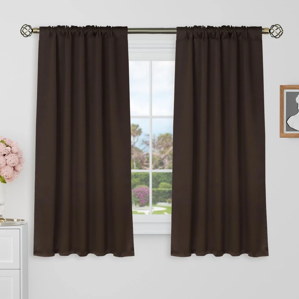 Dressing up for your windows with these premium blackout curtains from BGment , addinfg elegant touch to your home. Our window curtains are made of durable fabric with exquisite workmanship, combined fashion and performance perfectly. Available in variety of sizes and rich colors, suitable for your bedroom, living room, dining room, infant room, kids room, office or other windows. Light Blocking & Noise Reducing: Our triple-weaved blackout curtains block 90% of sunlight, 100% of street light. Reduce outside traffic or neighbor noise. Creating a relax atmosphere to sleep or take a nap anytime. Thermal Insulated & Energy Saving: Our heavy duty curtains are effective at blocking out summer heat and winter cold. Balance room temperature for all seasons. Help you to save on energy cost. Absolute Privacy: Our curtain panels help to protect total privacy, ensure personal spaces are not be bothered. These room curtains stop light glaring through the window, supply you with the enjoyment of watching TV in real darkness. Care Instructions: Machine wash in clod water, general cycle with similar colors. Quick ironing, steam clean or tumble dry on backside at very low temperature. Do not bleach. Tips: Measurement: Curtains are measured before hanging, flat on floor. Lengths are from top to bottom. Size Advice:To insure a better room darkening effect, please choose curtain width 1.5-2 times than window wide. And install curtain rod 1.5 inch above window top. Color: Due to different computer screen display, the actual item color might slightly different from above images. For any questions, please contact us. We’re always here to help. Ready to decorate your window with BGment Blackout Curtains? Package Includes: Set of 2 brown blackout curtains; each panel measures 38 Inch wide by 48 Inch long, with 5 back tabs and 3” rod pocket fits most standard rods and makes the maximize coverage of windows. 3 Hanging Options: Our light blocking curtains can be styled in 3 ways: back loops, rod pocket or with your own clip - rings. These dual headers ( back tab and rod pocket ) will offer you flexible home decoration, and save money. Room Darkening: Our window curtains can block out 60%-80% above sunlight ( Darker colors work better ), perfect for night shifts, late sleepers and afternoon naps. Protect floor and upholstery from color shading. Thermal Insulated: Our energy saving curtains insulate against summer heat and winter chill to balance your room temperature, save your energy costs. Reduce outside noise. Care Instructions: Our heavy-duty room blackout curtains are machine washable in gentle cycle and cold water. Do not bleach. Warm iron or steam iron on backside, and tumble dry at low temperatures.