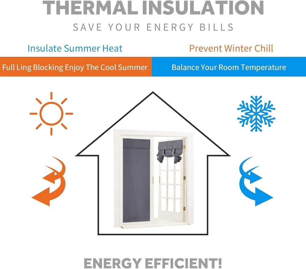Blackout French Door Curtains, Room Darkening Shades Small Window Curtain Drapes Thermal Insulated Tricia Door Blinds for Classroom Glass Window, W26 x L40 inch, 1 Panel, Gray 100% Glass WELL MADE - All you need are included in the package. Package includes 1 panel ( each panel measures W 26" x L 40" ) + sticky strap. Curtains made of triple layers of blackout fabric, same fabic on both sides. EFFORTLESS INSTALLATION - Sticky stickers on top which is easy hanging and using on windows without rod. You can tie up the curtain with straps attached for sightseeing or tie down for full privacy. LIGHT BLOCK - Curtains can block 85-95% sunlights and UV rays ( Dark color works better ). The energy effcient door curtains minimize heating and cooling costs, while prevent your furniture from sun exposure. WIDE COMPATIBLITY - has various styles of CURTAINS to meet your ideal for home decor, which provide a harmonious window dressing and make your home lively. EASY CARE - Machine washable, using only non-chlorine bleach & warm iron when needed. Tumble dry low.