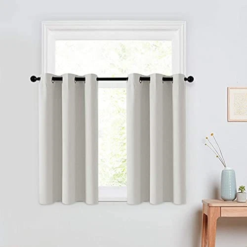 1. These blackout kitchen curtains are perfect for adding privacy and style! The greyish-white color blends well with any decor, and the triple-weave fabric blocks light effectively. The grommet top makes installation a breeze, and the quality is impressive—no wrinkles, just ready to hang. They fit my small bathroom window perfectly and look great in the kitchen too. Fast delivery and a trusted seller make this purchase even better. Highly recommend for anyone needing a simple, functional, and stylish window solution!
