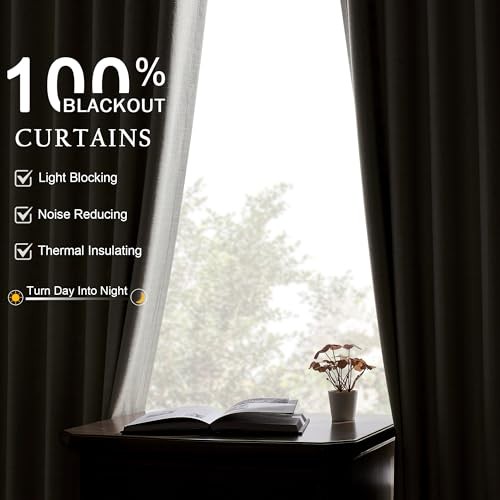 Blackout Linen Curtains 50x100 Inches Grey Beige Set of 2 for Living Room