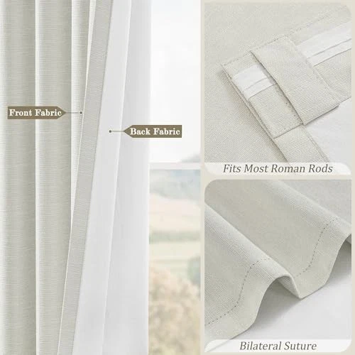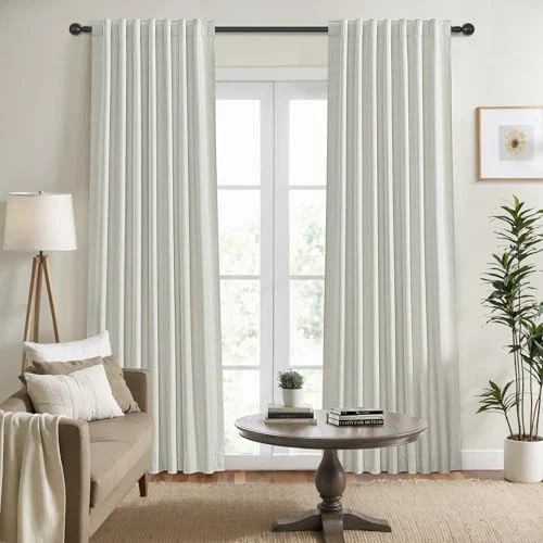 1. Absolutely love these blackout curtains! The greyish beige color is elegant and neutral, blending perfectly with my living room decor. The triple-layer fabric blocks out sunlight completely, making my space feel cozy and private. They also help with temperature control—cool in summer, warm in winter. The back tab design gives a clean, tailored look, and the quality is impressive for the price. Fast shipping and great customer service too—highly recommend!