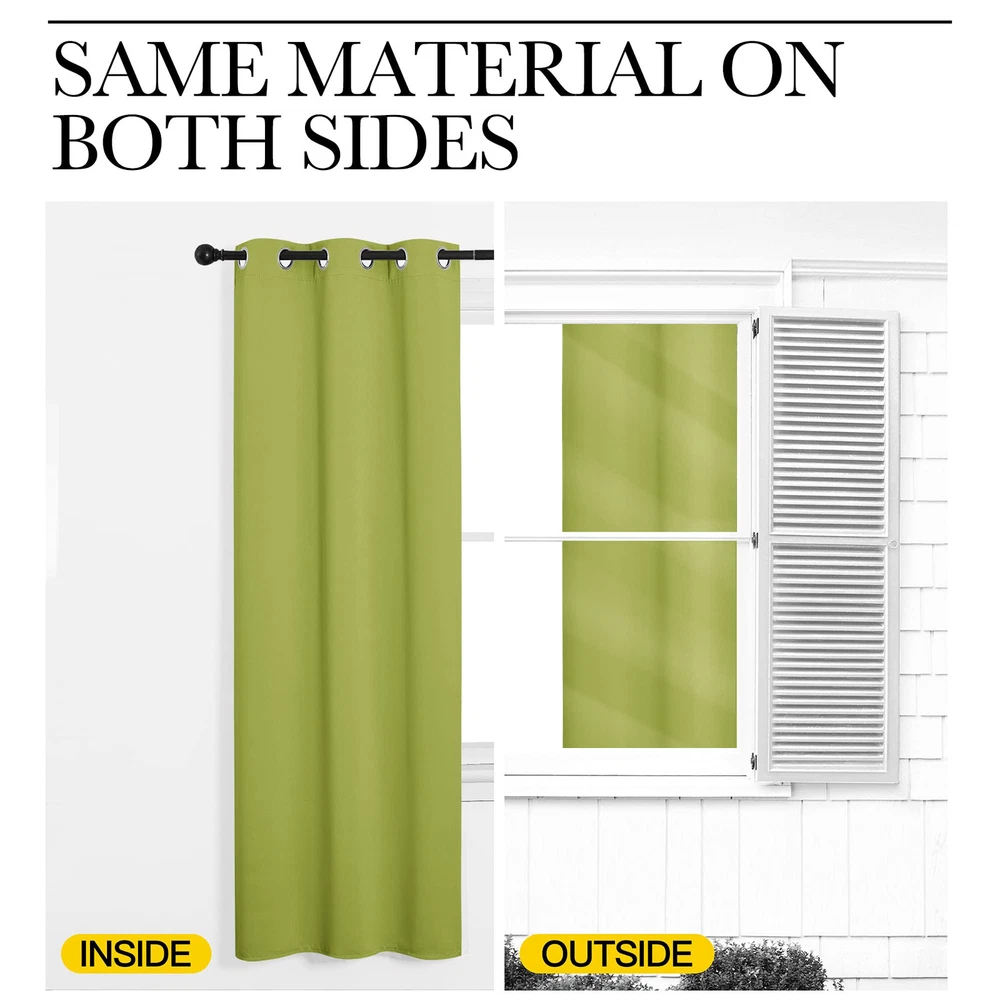 Patio Glass Door & Window Curtain ELEGANT DESIGN: A panel BLACKOUT CURTAIN per package. Each Curtain Panel measures 120" wide x 108" long. The grommets don't feel flimsy, they are fairly lightweight, and slide easily along the rod, fitting the curtain rod up to 1.6 inches in diameter. NICE MATERIAL: This smooth, soft and heavy-duty blackout fabric is woven with three-layer construction. The middle layer of black yarns creates a curtain panel that is excellent for blocking out 85%-99% of light (Dark color works better on blocking light) while adding a pop of color to your room. MULTIFUNCTION: This Blackout Window Curtain keeps out the heat in the summer and they are very helpful in the winter. There is a noticeable change in room temperature when they are closed and look elegant when opened. Curtains are also fantastic for a late morning sleep in as they keep the sun out. GOOD CHOICE: It blocks the sunlight while adding a pop of color to my room. The color is brighter in natural light, all my bulbs give a slightly yellow light. Besides, you can choose blackout valance and sheer curtains in the to match. Such curtain sets provide a more permanent harmonious window dressing. EASY MAINTENANCE: Good quality finishing will withstand years of use. Machine washable and Wash the water temperature below 86F. Mild detergent no bleaching. Low-temperature ironing. Measure your pole and window size before you choosing curtains.