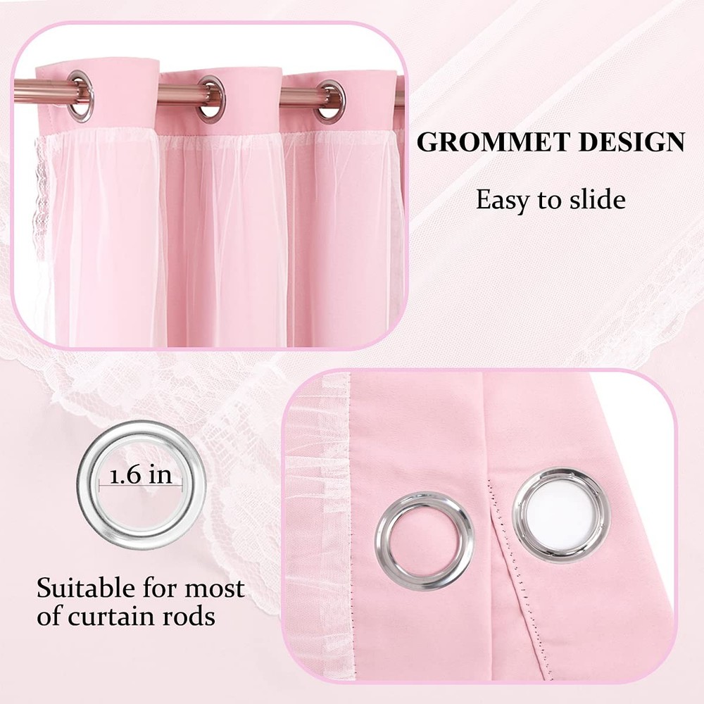 Time to refresh your room? Instantly elevate your window with this simply-stylish, solid-hued semi-sheer curtain panels! Get sun-filled rooms: Crafted from textured fabric, this sheer natural curtain adds a luxe, lightweight texture to any room. The horizontal striped design brings a sheen texture feel. These natural window drapes gently diffuse light, thus create an ethereal ambiance. Guard your privacy while letting light in: See-through semi-curtains are designed to let fresh air through and the perfect amount of light splash into your home Woven slub texture curtain fabric make it thick enough to enhance privacy for your home. These are the ideal option between light-blocking curtains and traditional sheers which keep your spaces bright and cheerful without worrying about visibility from outside. Durable sheer window curtains: Color: Solid Natural semi-sheer curtains Size: 108"length sheer curtains by 52” width per panel, Total in 104" width Package: Valued 2 Panel draperies Material: Soft yet durable polyester fabric Light Filtration: Sheer curtain drapes Cleaning Method: Machine washable Tip: As a general rule, for proper fullness panels should measure 2-3 times the width of your window/opening. Cool iron out the folding line before hanging will get a perfect picture look. PACKAGE INFORMATION: Package includes 2 pieces of double-layer curtains. The curtains come with 2 tie-backs. Each panel has a crushed sheer layer over a blackout curtain measuring 52"W x 108"L with 8 silver grommets(1.8-inch inner diameter)top. UNIQUE DESIGN: Crushed sheer layer with unique lace seam design and covered with one blackout curtain panel features a dreamy and romantic look to liven up any home decor and give you versatile layer options. EXCELLENT FUNCTIONS: The blackout layers of the mix and match curtains are made of triple woven fabric and can block up to 60-75% harsh incoming light and harmful UV rays, protect furniture from sun damage. It is also good for preventing outside noise from disturbing sleep & family time. VERSATILE USE: Matching with another blackout curtains for a layered look and total privacy or keep it clean and casual as standalone sheer panels for a touch of elegant simplicity. EASY CARE: Machine washable, tumble dry. No Bleaching. Quick ironing or steam clean when needed.