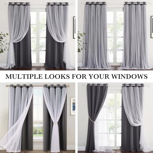 Return Policy Fast Delivery Trusted seller Blackout and Sheer Window Curtains Mix & Match Double-Layered Grommmet Drapes White Sheer Overlay Light Blocking for Kids Bedroom/Sliding Glass Door (Grey, W52xL95 inch, 2 Panels Set) Product Description Polyester Imported PACKAGE CONTENT: 2 Double-layered blackout curtains with white Sheer Overlay, each measuring 52" wide by 95" long. 8 Grommets (1.6" inner diameter) top of the each panel. These room Darkening curtains are not only easy to hang but also add a touch of sophistication. Plus, we’ve included 4 tie backs to give you even more styling options! EXCLUSIVE DESIGN: Our blackout and sheer curtains feature a one-of-a-kind design with a voile panel overlay, instantly adding an air of elegance and uniqueness to any room. The combined design means you only need one curtain rod, saving you time and effort. With a wide range of colors available, you can easily find the perfect match for your home’s style, whether it’s modern, classic, cute or anything in between. THERMAL INSULATED: This advanced technology ensures a soft and luxurious touch. Meanwhile, it effectively insulates against the cold in winter and the heat in summer, and also reduces noise to a certain extent. The sheer layer, on the other hand, is incredibly soft to the touch, maintains a beautiful drape, and resists wrinkles, keeping your curtains looking pristine day after day. EXCELLENT FUNCTIONS: The Double Layer Grommet blackout curtain is made of triple-woven fabric, which can block 75%-90% light (darker colors better),perfect for late sleepers and afternoon naps. They also provide excellent privacy. Whether it's your kitchen, living room, bedroom, or dining room, girls kids room, nursery, these curtains are the ideal choice to enhance both functionality and style. EASY CARE: Machine washable, tumble dry. Quick ironing or steam clean when needed.Visit store to find out much more window dressing. Shipping Returns Payment Shipping Shipping is FREE to all addresses other than APO/PO boxes in the lower 48 states. All our stock ships from US-based warehouses. Shipped via USPS or UPS (depending on location and package weight) Unless stated otherwise, all orders will ship within 24-72 hours of your payment being processed. Check our feedback to see the great reviews of FAST shipping we offer. Returns Seller does not accept returns Payment We currently accept payment via eBay managed payments only. Once payment is cleared, we will dispatch your shipment within 1-3 business days. Please refer to the "Shipping" tab for more information regarding shipping speed to your destination.