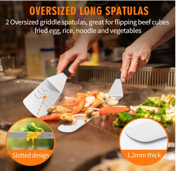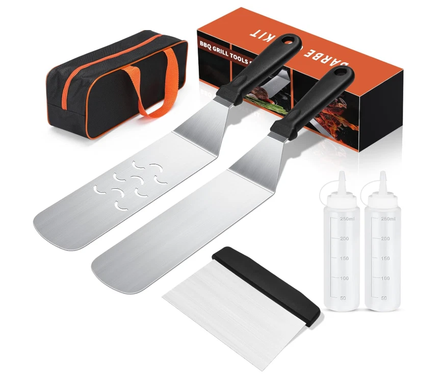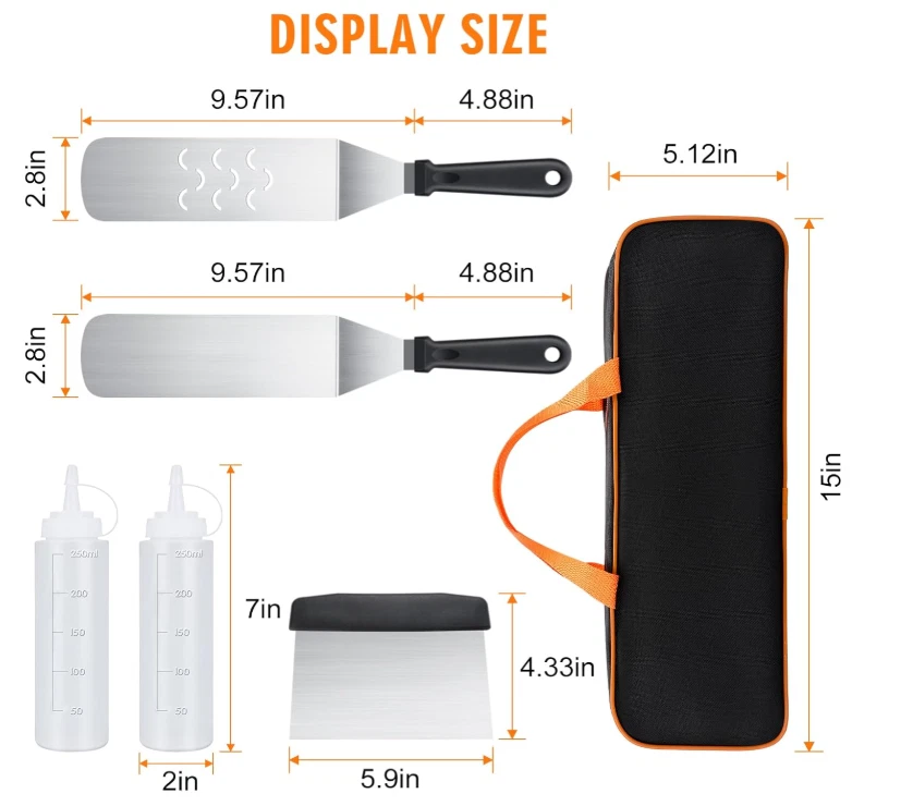 Blackstone Griddle Accessories Kit, 6pcs Blackstone Accessories kit for Blackstone and Camp Chef, Griddle Accessories Kit with Griddle Spatula& Carry Bag, Great for Outdoor BBQ, Teppanyaki and Camping Brand XHEEPEAN Material Stainless Steel Item dimensions L x W x H 15 x 4.5 x 4.5 inches Handle Material Acrylonitrile Butadiene Styrene (ABS) Included Components Flatware About this item Multipurpose Blackstone accessories kit: 2 oversized professional-grade restaurant-style stainless steel spatulas, great for flipping beef cubes, burgers, pancakes, fried egg, rice, noodle, veggies, and all other grill or griddle applications. Each tool is made to a high standard; The perfect heavy-duty tool kit for any novice or professional alike. Must-Have Griddle Accessories: This set also include 1 stainless steel chopper/scraper to dice food and scrape griddles clean. 2 premium leak-free fine tip bottles for condiments and liquids like oil or water, and 1 storage bag. Blackstone accessories will please everyone at your BBQ, weekend party, or your everyday meals. Premium Stainless Steel: Griddle accessories are made with stronger and thicker stainless steel. Heat-resistant and nonslip, the handle of the abs provides a comfortable grip, with hanging holes for easy storage. you can easily enjoy your grilling, camping, or cooking without worrying about your tools bending, breaking, or rusting again. Blackstone griddle accessories are dishwasher safe for quick and easy BBQ clean-up. Perfect Gift Choice: Beautifully designed gift box with quality packaging, which is an ideal gift choice for Father's Day, Thanksgiving, or Christmas. These practical Blackstone accessories are for most grills and are suitable for indoor and outdoor cooking. It can meet all the essentials of your daily backyard barbecue and camping activities. Whether you are in the kitchen, your backyard, or out camping. You can enjoy BBQ time with your family and friend easily. . We offer FREE shipping on all orders! . We ship within Five business days of payment, usually sooner. . We use a selection of shipping services such as UPS, FedEx, USPS etc. . We only ship to the lower 48 states, no APO/FPO addresses or PO Boxes allowed. . Local pickups and combined shipping options are not provided at this time. . Your satisfaction is a wonderful reward for our efforts. Please assist us by leaving a positive review if you feel pleased with our service. . In the event that you encounter any difficulties related to your order, please do not hesitate to reach out to us directly through the Messaging system on the Ebay platform. Kindly consider opening a COMPLAINT or a RETURN REQUEST as a last resort, only after all other possible measures have been attempted and we have been unable to provide you with assistance. . We will get in touch with you within 24 hours and make every effort to ensure your satisfaction. . Please rest assured of our service quality.