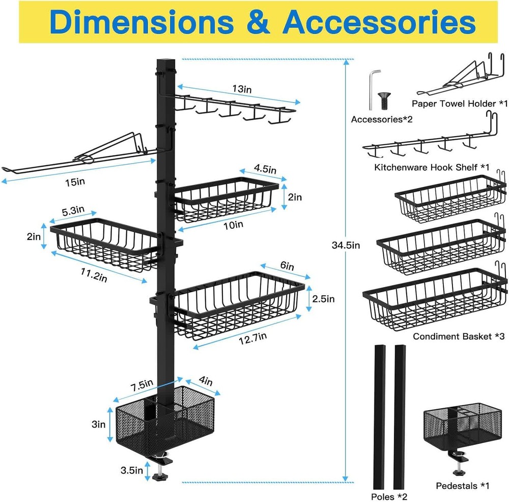 Griddle Caddy for Blackstone Griddle Accessories, BBQ Grill Caddy with Paper Towel Holder, Outdoor Kitchen Accessories for Camper, Grill Accessories Organizer, Picnic Utensil Condiment Caddy Item Description About this item 【New Upgraded Blackstone Accessories】: We have upgraded the structural design of this grill accessories for outdoor grill so that it can be selected in four directions. You can choose more freely when installing parts such as paper towel holders and condiment baskets. In the desired hanging direction, you can no longer worry about oil dripping from the upper hanging accessories onto the condiment jars! 【High Quality & Large Capacity】: This blackstone griddle accessories adopts high-quality powder coating + high-quality steel material structure to ensure its durability. In addition to this, we have equipped the product with a total of three spice racks. With a 10-in-1 tool hook and paper towel holder, all barbecue supplies are organized and stored at once, so the countertop is no longer cluttered! 【Windproof Paper Towel Holder】: This is a perfect outdoor kitchen Accessories. We are well aware of the trouble of paper towels being blown away by the wind during outdoor barbecues. To solve this problem, we added a paper towel arm to the paper towel holder to prevent paper towels from scattering. Scattering will no longer happen and you can enjoy your BBQ party with confidence! 【High Compatibility & Multi-Functional Use】: We have lengthened the distance from the bottom bolt to the metal base, making it easier to install on a variety of flat desktops, including kitchen countertops, next to grills, and patio table tops. Great place to use it. The product also comes with a storage bag for you to store and carry this essential set of camper essentials. 【Grilling Gifts for Father/Husband...】This is the best camping gifts and camper must haves for anyone who loves outdoor BBQs and picnics. If your grill caddy is missing accessories or the product is damaged. Please feel free to contact us, and we will solve it for you as quickly as possible. › See more product details Payment We accept payment only through PAYPAL Shipping We ship products worldwide through standard express courier service, it will reach within 7 to 10 days to abroad buyers, we ship the product after recieved clear payment and give full information about shipment to the buyer Return We accept product return within 7 to 21 days from delivery date but product should be in original position and not in damaged condition,the return shipping charges will be buyer responsibility