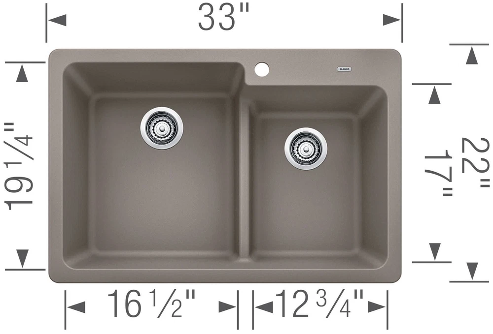 Powered by Frooition All Categories Blanco 442092 Grandis 33" Drop-In or Undermount Double Basin Silgranit Kitchen Sink Overview Item Description Blanco 442092 Features: Covered under Blanco's limited lifetime warranty Made of an 80% granite composite Drop in and undermount installation Double basin sink with a 60/40 basin split Low 5" basin divide - provides excellent functionality Channel grooves optimize drainage Rear drain location increases workspace area in the sink as well as storage space underneath Non-porous surface repels liquids and does not absorb bacteria or odors Simply scrub off marks left behind forks or knives This Blanco Sink comes with 1 faucet hole ready for use, and 2 prepared "knock-outs" to create additional holes for use Takes heat up to 536 degrees, exceeding common boiling and baking temperatures Will not crack or break if heavy pots or pans are dropped into the sink Baking soda and a sponge are all you need, no harsh chemicals required Blanco 442092 Technologies and Benefits SILGRANIT: Life in the kitchen can get messy. With Over 30 years of material development, SILGRANIT has been engineered to take on the toughest kitchen tasks. Our patented sink material is strong and more durable than other sink surfaces. There is no risk of thermal shock and SILGRANIT will not blister, burn, melt or discolor from heat. With its non-porous, hygienic surface, it has the ability to push away liquids and residue resulting in a low maintenance, long-lasting material that is not only scratch and stain resistant, but easy to clean. Hygienic+ Surface: Acts as a shield against dirt and dampness - inhibiting bacteria growth by up to 98% Why Choose BuildInc? OUR PROMISE TO YOU About Us At Build, we promise to provide the best selection we can, most competitive pricing, and unmatched customer service. Our store has quality home improvement products from trusted manufacturers like Moen, American Standard, Delta, Kraus, Kichler, Progress Lighting, Schlage, Kwikset, Baldwin, Broan, NuTone, Air King, and Rev-A-Shelf. With over 200,000 home improvement products for you to choose from, we have just what you need to get your project done. Fast & Free Shipping We promise to make it our priority to get you your items as fast as we can. We ship from 440 warehouses around the country, ensuring that your product will get to you as soon as possible. We know you're eager to get your hands on your new purchase, we would be too. As a bonus, most items ship for free. Returns We are happy to accept returns of unused or defective items for a refund within 30 days from the date of delivery. For returns outside 30 days, please contact our Customer Service team to go over our options. For full details, please view the Shipping and Payments tab above. To initiate a return simply go to the eBay Returns Portal and submit a return request. We ask that all items be returned with all original components via a traceable method. Once your return is received and processed, we will quickly get your refund or replacement issued. If for any reason you are unsatisfied with your purchase or for product or warranty questions, please contact Customer Service team for assistance. More Items! View more great items! About Us | Shipping | Returns | Contact Us | FAQ | Collections | Special Offers! Powered by Frooition Frooition Frooition | No-js Template | eBay design, eBay store design, eBay shop design, eBay template design, eBay listing design (ver:froo_no_js) This listing is currently undergoing maintenance, we apologize for any inconvenience caused.