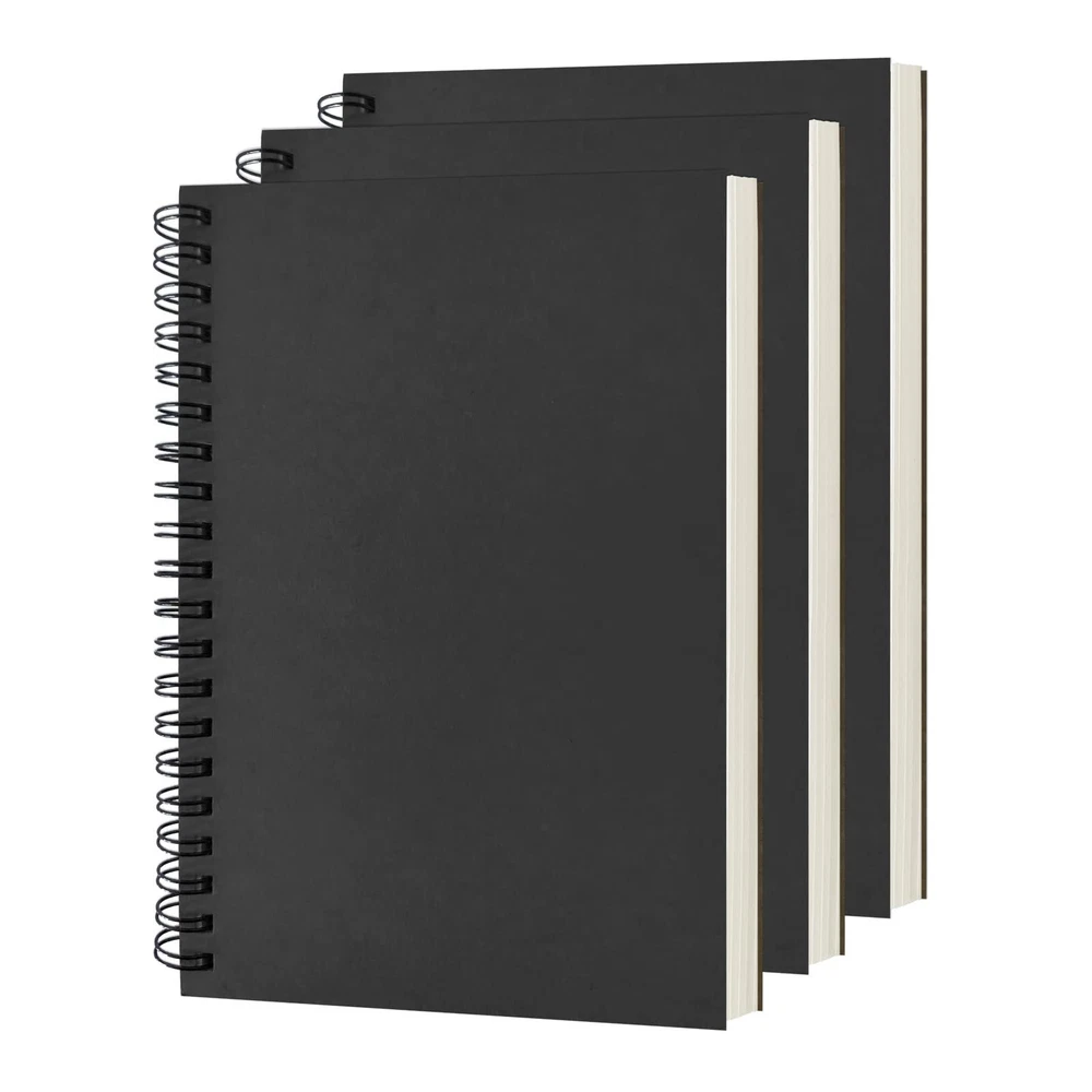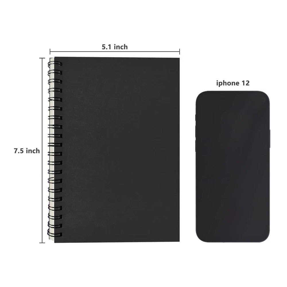 Package Contents: 3pcs black 19cm x 13cm / 7.5 inch x 5.1 inch black blank notebooks. With 100 blank pages / 50 sheets(100gsm) in each of the books. Size: 19cm x 13cm / 7.5 inch x 5.1 inch, perfect size for handbag, schoolbag or backpack. Blank inside pages: With 100 blank pages / 50 sheets in each of the books. Material: Thick paper prevents ink from inks through the pages. Package Contents: 3pcs black blank notebooks. Wide usage: Ideal for a diary, travel journal, poetry work, creative writing, making sketches and drawings, Work records, study notes, mood diary, scrapbooks and soon.