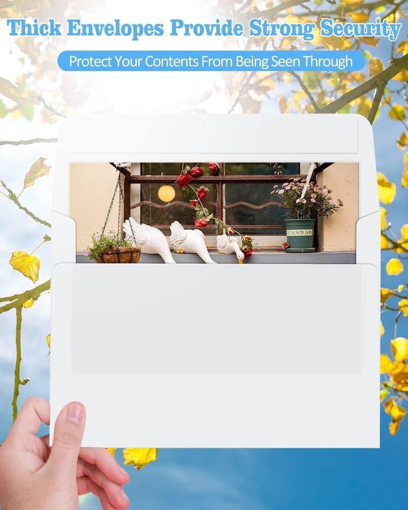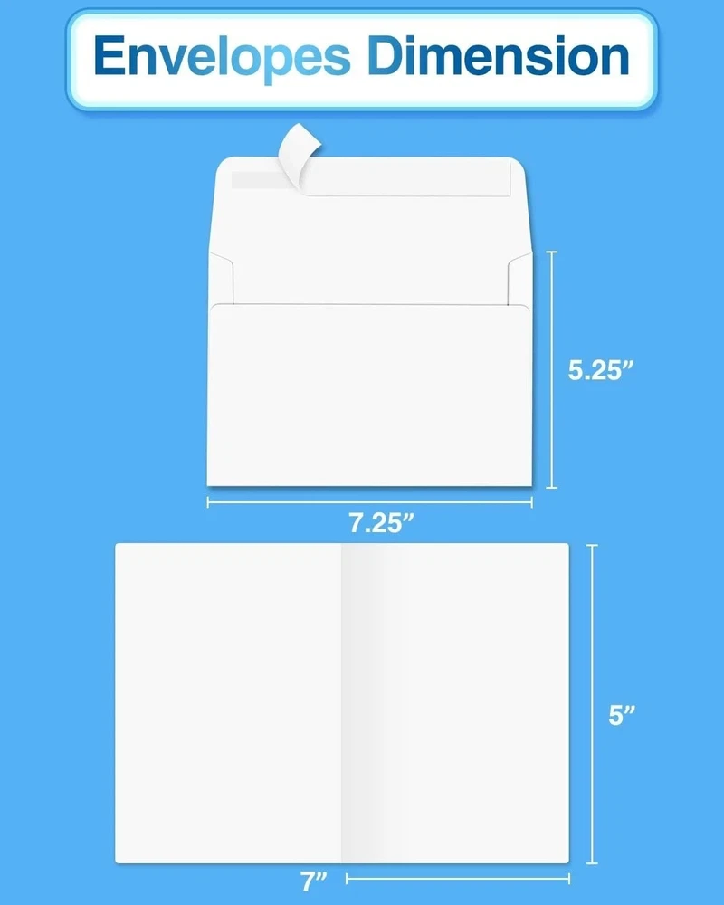 100% Money Back Guarantee if you are not satisfied with your purchase! _______________________ Description: Blank-Cards-and-Envelopes 60 Pack - 5 x 7 Folded Cardstock with A7 White Envelopes-for-Invitation, Heavyweight Blank-Note-Cards-and-Envelopes Self Seal Printable for Greeting Party Birthday Complete Set: Get the perfect 60 pack blank cards and envelopes set, no extra cards or paper cutting required. The A7 envelopes measure 5.25 x 7.25 inches, while the folded blank cards are sized at 5x7 inches Heavyweight Card Making Supplies: Crafted from 250 GSM premium cardstock and 120 GSM white paper, these blank note cards and envelopes offer exceptional thickness, providing a substaintial and bleed-resistant surface for colored pens and watercorlos Printer Friendly: These blank cards and envelopes are pure white, especially designed for easy printing and customization. They are compatible with most Inkjet and laser printers, no worry about smudging or jamming Privacy Protection: Whether you're sending personal messages or confidential invitations, you can trust these small envelopes and 5x7 cardstock to safeguard your privacy with their premium thickness Self-Sealing Adhesive: The invitation envelopes feature a reliable self-seal closure, making it quick and hassle-free to secure your cards inside. No more worrying about messy glue or flimsy closures Wide Application: Use blank cards and envelopes for sending invitations, gifting with Thank You cards, crafting personalized greeting cards, or engaging in creative projects. Ideal for birthday, baby shower party, wedding, celebration, all occasion and all festivals _____________________________ 100% Money Back Guarantee: We offer 30 Day Money Back Guarantee from the day you purchased if you’re not satisfied with your product. If you have any questions about our products, please contact us as soon as possible. Customer satisfaction is our absolute priority. Shipping: We are always working hard to ensure your package arrives as soon as possible. Please understand that some factors like weather, high postal traffic, and the performance of shipping companies are outside of our control. We offer free shipping to the lower 48 states and ship within 3 business days of payment, usually sooner. We do not accept P.O. Boxes. Please provide a physical address. You will be notified via eBay messages as soon as your items ship. Delivery? We will ship out the item in 2-3 working day after receiving the payment. Usually the delivery takes 2-5 business days. If you don't receive the items after 10 days, please feel free to contact us. You'll get a replacement or a full refund. Please DO NOT open a return request or leave negative feedback without asking for help. Returns: We offer a 30-Day Return Policy on defective/wrong items or items which you are not completely satisfied with. You have the option for a full-refund or an exchange of the item. Returned items must be in all of the original packaging and include all of the original accessories or items that came with it. The item and package should be in original condition. Contact Us: Any queries or issues incurred, please feel free to contact us via eBay message, we will get back to you within 24 hours. Please DO NOT open a return request or leave negative feedback without asking for help. Feedback: Your feedback is very important to us. After you get your package and you are satisfied with our service, please leave us positive feedback. We're highly appreciated for your POSITIVE feedback & 5 stars. Enjoy shopping.