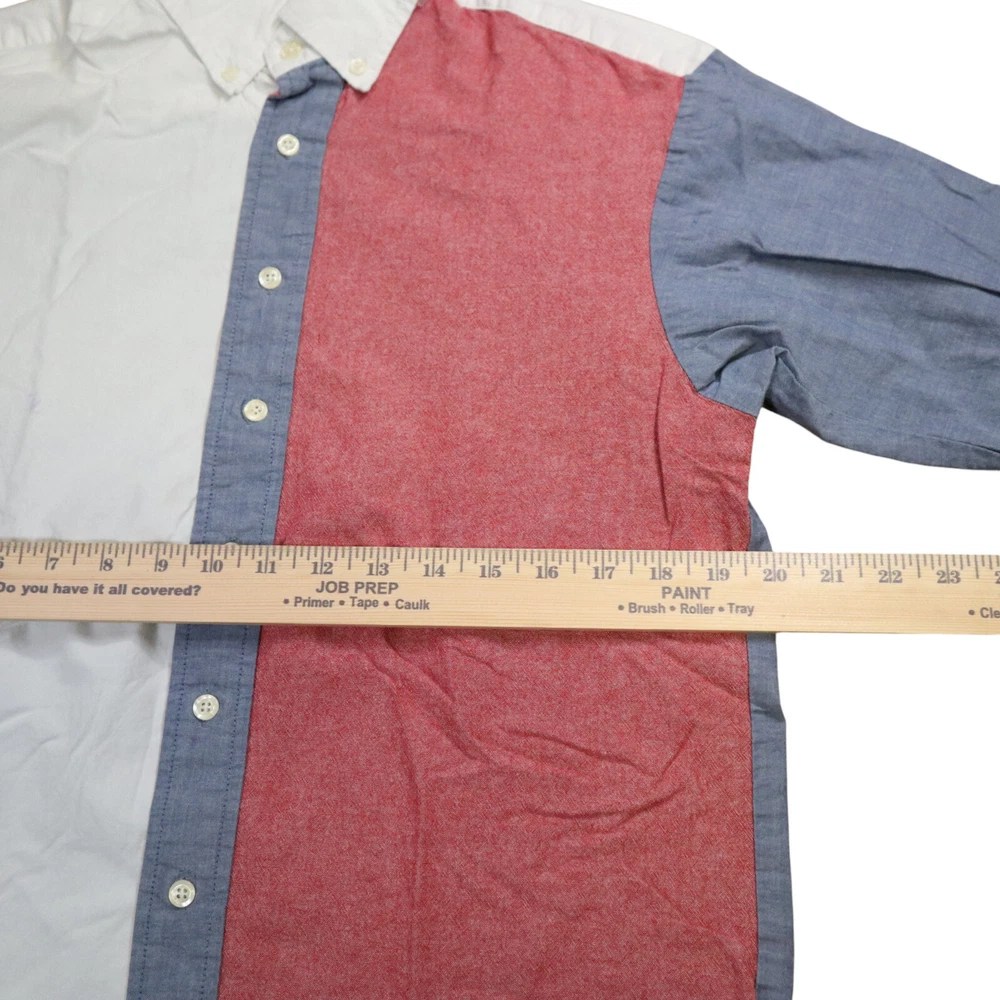 Material: Cotton Fit: Classic Color: Multicolor Collar Style: Point Department: Men Chest Size: 40 in Season: Fall, Spring, Summer, Winter Closure: Button Type: Button-Up Character: Tommy Size Type: Regular Neckline: Collared Size: M Vintage: Yes Country/Region of Manufacture: United States Handmade: No Sleeve Length: Long Sleeve Garment Care: Machine Washable Accents: Button, Embroidered Brand: Blankenship Dry Goods Personalize: No Theme: 80s, 90s, Classic, Colorful, Cowboy, Dad, Patriotic, Retro, USA, Western Pattern: Colorblock Features: All Seasons, Easy Care, Pockets Fabric Type: Knit Occasion: Casual, Party/Cocktail, Travel