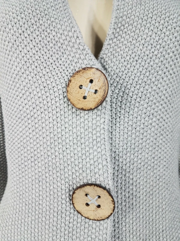 ladies collared V-Neck button front cardigan sweater Blarney Signature brand gray size L (Please refer to measurements below!) 100% cotton Excellent pre-owned condition!! No flaws to speak of. Measurements lying flat: Bust (pit to pit): 21 inches. Length (from nape of neck to bottom hem): 22 inches. Policies and Disclosures: RETURNS: Returns are accepted within 30 days of purchase. Buyer is responsible for return shipping. All items from this store come with an identification tag; Item(s) must be returned in original condition with the I.D. tag intact for a refund. SHIPPING: I do combine shipping when multiple items are purchased. In order to provide you with the least expensive price, you will need to send me a message requesting an invoice with combined shipping. CLOTHING: My goal is to sell only the finest quality new and gently used clothing items in my stores, and I strive for 100% satisfaction with every order. While my home is smoke-free, other pre-owned items from different sources cannot be guaranteed as smoke-free or pet-free. It is assumed that you as the buyer will be cleaning the garment once it arrives to you, so unless there is an obvious stain or odor, the clothing has not been laundered. I felt it was best left up to the buyer so no issues would surface regarding detergent allergies, shrinking, etc. Please note that any must or smoke odors can almost always be completely removed by adding 1 cup of distilled white vinegar to your normal wash cycle. I provide measurements on all my clothing items so that you, as the buyer, can make an informed decision about your purchase. Please use that information to compare it with a garment that fits you well to determine if the item will work for you. Seller will not assume responsibility for return postage on items that do not fit. COMMENTS: Please note that every item I sell is described to the best of my knowledge and ability, however, I am a human being, so occasionally I do make mistakes. Colors may vary slightly between screens and monitors. Sizing can vary from brand to brand. If you have any questions about the item(s), free to ask and I will do my best to get back with you in a timely manner. If you have any issues with your purchase, please do not hesitate to contact me prior to leaving negative feedback so we can try to resolve the issue. I am flexible and easy to work with. If you see something you are interested in, feel free to make a reasonable offer! (On a side note: Lowball offers are insulting and will be declined.) Take a moment to browse my other items for sale. I offer a large variety of items, with new items daily, so there’s something for everyone! Thanks so much for taking the time to look and have a wonderful day!