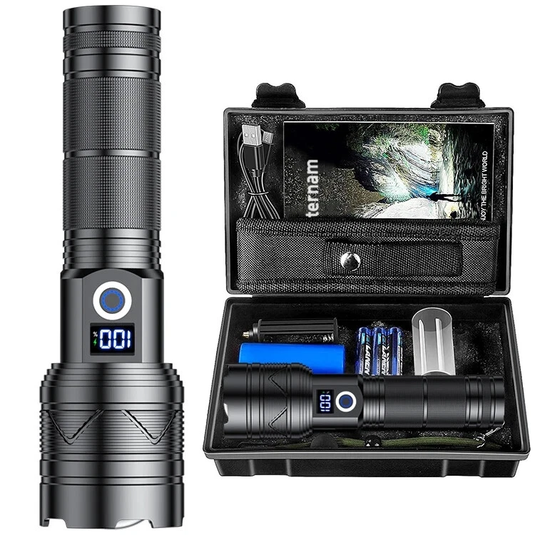 Alright folks, gather ‘round because I’m about to introduce you to a beast that’ll light up your life—literally . This isn’t just any flashlight; this is the ultimate tool for those who demand reliability, power, and durability . Whether you’re navigating the backwoods, fixing something under the hood, or just need to shine a light on your path, the Blazer 5000 has got your back. Built Like a Tank: Rugged Aluminum Alloy Construction : Tough enough to handle whatever you throw at it. Perfect Size & Weight : At 16.4 cm (6.46 in) long and weighing 580 grams (20.46 oz), it’s compact yet powerful. Battery Power Options : Runs on a 5000mAh 26650 rechargeable battery , with compatibility for 18650 or AAA batteries. You’ll never be left in the dark. Lighting That’s No Joke: 30W White Laser LED : Blasts out a beam so bright, it’s like having the sun in your hand. Five Modes : High, Medium, Low, Strobe, and SOS—because being prepared is half the battle. Telescopic Zoom : Precision lighting for those moments when accuracy is key. More Than Just a Flashlight: Power Bank Functionality : Charge your phone or gear out in the field. Phosphor Glow Strips : Makes it easy to spot in the dark—no fumbling around. Water-Resistant : Built to withstand the elements with ease. Extras You’ll Appreciate: Hard Case : Keep it protected when not in use. Belt Pouch : Quick access for when you’re on the move. Cloth Cover & Tail Rope : Added convenience for storage and carrying. Whether you’re an adventurer, a handyman, or just someone who doesn’t settle for second best, the Blazer 5000 is your new go-to gear . Tough, reliable, and powerful—just like you. So, what are you waiting for? Light up your world today! Remember, stay sharp, stay ready, shoot straight!