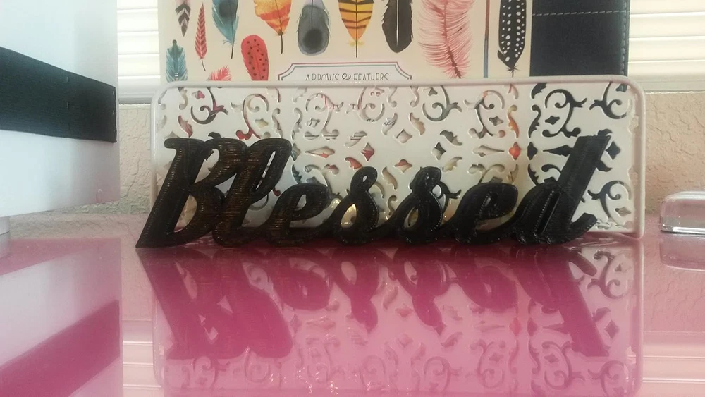 Blessed Scripture Word Sign Shelf Sitter Office Desktop Dorm Decor Wall Hanging Decor Window Mantle Night Stand Word Art Can be used as a shelf sitter, desktop decor, window sill decor, mantle decor, dorm decor, etc. Measures 1 7/8" tall, 8" wide, and 3/8" thick. Made of ABS plastic. This "Believe" word sign can be used as a shelf sitter, wall hanging, desktop decor, office decor, dorm decor, mantle decor, etc. Basically, anywhere you can set it down is where it can be used as decor. It measures 1 7/8" tall, 8" wide, and 3/8" thick. If you want to use it as a wall hanging, you can simply use the natural geometry of the letters and hang it on the wall with finishing nails (not included). Made of strong ABS plastic.
