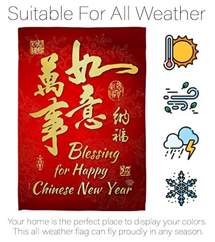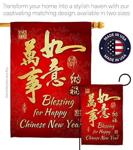 Blessing for Chinese New Year Garden Flag-Set Wood Dowel Spring Lunar Good Lu...