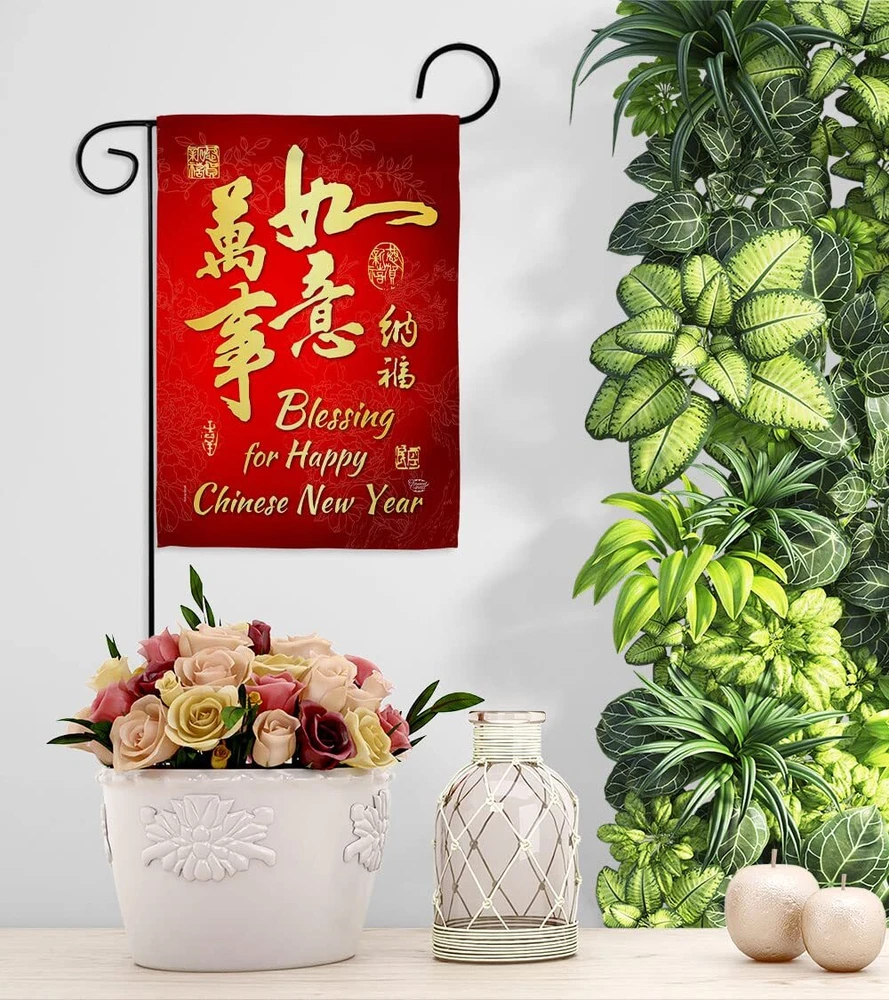 Blessing for Chinese New Year Garden Flag-Set Wood Dowel Spring Lunar Good Lu...
