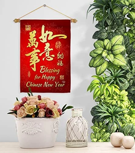 Blessing for Chinese New Year Garden Flag-Set Wood Dowel Spring Lunar Good Lu...