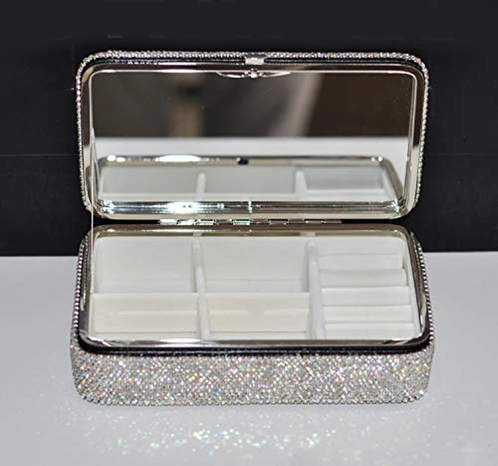 Bling Crystal Leather Portable Travel Jewelry Box Organizer Display Storage Case for Rings Earrings Necklace (Silver) - Buy Now with Fast Shipping! Bling Crystal Leather Portable Travel Jewelry Box Organizer Display Storage Case for Rings Earrings Necklace (Silver) Product Details Color: Silver Brand: Bestbling Material: Faux Leather Style: 摩登 Special Feature: Durable,Lightweight,Portable Recommended Uses For Product: Necklace Product Dimensions: 3.8"D x 7.4"W x 2"H Target Audience: Girls Shape: 钻石 Finish Type: Polished Color: Silver Brand: Bestbling Material: Faux Leather Style: 摩登 Special Feature: Durable,Lightweight,Portable Recommended Uses For Product: Necklace Product Dimensions: 3.8"D x 7.4"W x 2"H Target Audience: Girls Shape: 钻石 Finish Type: Polished Inner Material: Velvet Item Weight: 1.28 Pounds Number of Compartments: 4 Jewelry Storage Type: Jewelry Case UPC: 711102661203 Manufacturer: REM Craft Co., LTD Occasion: Prom Mounting Type: Table Top Closure Type: Lobster Clasp Item Weight: 1.28 pounds Is Discontinued By Manufacturer: No Finish: Polished Number Of Pieces: 5000 Special Features: Durable,Lightweight,Portable Batteries Included?: No Batteries Required?: No Date First Available: November 22, 2018 Key Features ✅ Sparkling design: Adorned with over 5000 high-quality rhinestones, this jewelry box is perfect for those who love a touch of bling. ✅ Durable and Portable: Made with sturdy materials, this lightweight box is easy to carry and perfect for travel. ✅ Compact and Elegant: With a simple yet elegant design, this jewelry box is great for carrying small jewelry on trips or storing at home. ✅ Item dimension: 5.8inch(L) x 4inch(W) x 1.8inch(H) ✅ Premium Materials: Featuring a deluxe synthetic leather exterior and high-quality velvet lining, this jewelry box is made to last. Product Description Keep your favorite jewelry safe and organized with the Bestbling Bling Crystal Leather Jewelry Box Organizer. Adorned with over 5000 high-quality rhinestones, it features a stylish and unique design that's perfect for those who love a touch of bling. Made with sturdy yet lightweight materials, this box is easy to carry and perfect for travel. Its compact size and elegant design make it great for carrying small jewelry on trips or storing at home. Measuring 5.8 inches (L) x 4 inches (W) x 1.8 inches (H), it's the perfect size for storing rings, earrings, and necklaces. The deluxe synthetic leather exterior and high-quality velvet lining ensure your jewelry stays safe and protected.