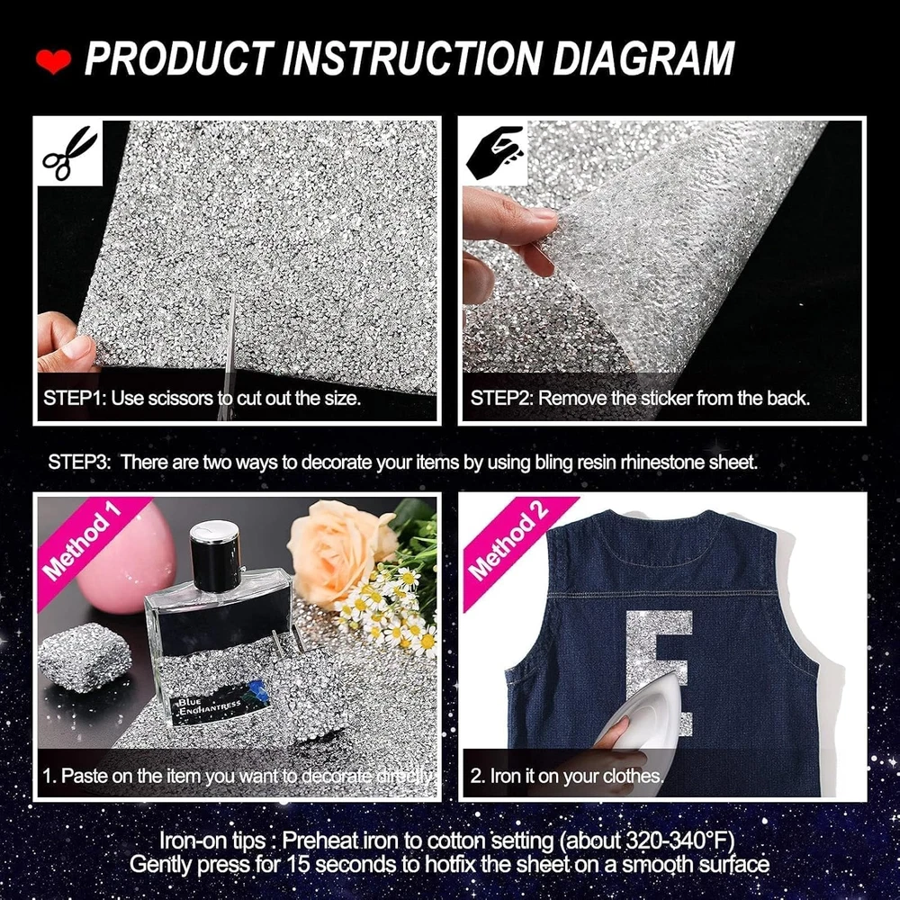 Store New Arrivals Add to Favorite View Feedback Contact Bling Rhinestone Sticker DIY Home Decor Stickers Self-Adhesive Crystal Sheet Stickers for Cars & Crafts Decoration(Silver,9.4" X 15.8") Description Item model number LOCA20210409RS Style Modern Number of Items 1 Pattern Solid Embellishment Glitter Theme Automobile Number of Pieces 1 Special Feature Self Adhesive Age Range (Description) Adult Surface Recommendation Metal,Wood,Plastic Material Resin,Rhinestone Finish Type Polished Package Dimensions 9.5 x 1.6 x 1.3 inches Reusability Single Use Indoor/Outdoor Usage Indoor Water Resistance Level Not Water Resistant Shape Rectangular Unit Count 1.0 Count Item Weight 6.4 ounces Target Audience Adult car and laptop owners or enthusiasts Color Silver Item Form Sheet Recommended Uses For Product Laptop, Car Size 9.4"x15.8" HIGH DENSITY: Each resin rhinestone is high-precision section size in 3mm. With the AAA grade standard, each of the crystal rhinestone on our sticker sheets is with 17 multi-faced cutting, high brightness. With our sparkling gem rhinestone stickers, your crafts will be eye-catching HIGH QUALITY AND PACKING SERVICE UPGRADE: We use strong adhesive and highly durable stickers made with materials that meet stringent quality standards, ensuring they are reliable for use. Each of our bling rhinestone crystal stickers sheet is rolled on a sponge stick and tightly sealed to make sure there will not be fold marks when to be used EASY TO USE: Our rhinestone bling sticker sheets are Self-Adhesive and iron-on. Cut and shape as you desired, carefully peel off the back paper, and press properly to a smooth surface or preheat iron to cotton setting (about 380°F) gently press for 15 seconds to hotfix to a smooth surface. To make your craft last longer pls make sure the sticker is water-free for at least 48 hours once it is applied WIDE RANGE APPLICATION: Our self-adhesive crystal stickers sheet is suitable for countless applications and occasions. Super recommended applying as DIY car bling decoration sticker, Home staging, wedding, hand-craft, Suitcases, laptop, notebooks, books, gifts, hats, furniture decoration, or even custom your pet’s bed embellishment PACKAGE INCLUDES: The size of the glitter rhinestone stickers sheet is 9.4" x 15.8" and the color is Silver as the pictures have shown Product Description Rhinestone sheet iron on & self adhesive for decoration Available in multiple colors to meet different needs. ABOUT US We offer the best prices around on high quality products. Our E-store includes media such as books, movies, music and games while offering electronics, toys, sporting apparel, clothing, tools, general home, garden items and more. SHIPPING We are always working hard to ensure your package arrives as soon as possible. Please understand that some factors like weather, high postal traffic, and the performance of shipping companies are outside of our control. We offer free shipping to the lower 48 states and ship within 2 business days of payment, usually sooner. We do not accept P.O. Boxes. Please provide a physical address. For shipping outside of the continental USA, we only use eBay's Global Shipping Program.The item is shipped to KY and then sent to the rest of the world. International customers are responsible for all duties and taxes. Continue to check out in order to calculate costs for shipping the item to your country. Messages regarding eBay's Global Shipping Program MUST be directed at eBay EXCLUSIVELY. RETURNS We offer a 30-Day Return Policy on items which you are not completely satisfied with. You have the option for a full-refund or an exchange of the item. No returns are available on items shipped outside of the USA. PAYMENT We accept PayPal. CONTACT US This page content is yet to come Please ad us to your favorite seller and visit again later Thank You CUSTOMER SATISFACTION We try our very best to make sure every customer is completely satisfied. If there's a problem, message us! We're happy to help. WE ACCEPT Copyright © 2021 AutoDS. | All Rights Reserved