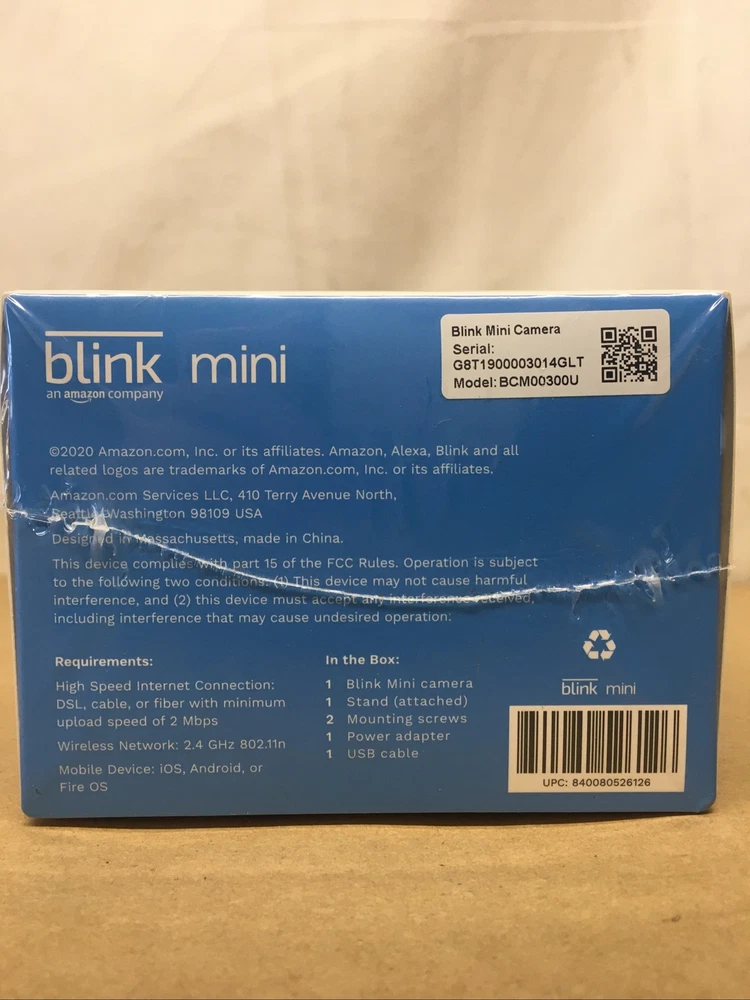 Brand: Blink Country/Region of Manufacture: United States Power: 240 V Surveillance Technology: IP/Network Type: Surveillance Camera Smart Home Protocol: Bluetooth, Infrared, Wi-Fi Year Manufactured: 2020 Maximum Resolution: 1080p Connectivity: Wireless UPC: 0840080526126 Color: White Battery Included: No Features: Bracket, Battery Power Source: USB Color Mode: Color Day, B&W Night Smart Home Compatibility: Amazon Alexa MPN: BCM00300U Model: BCM00300U Location: Indoor Only gtin13: 0840080526126