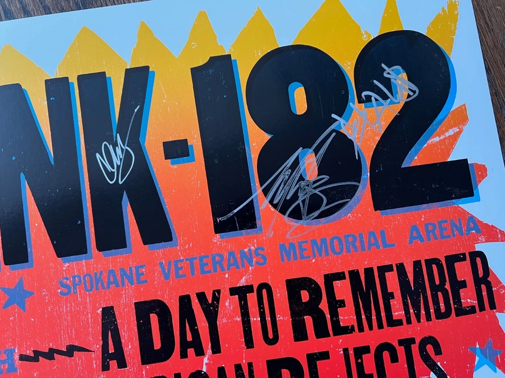Concert poster collector? Music lover? Blink-182 fan? Check out this limited-edition concert poster from the band's concert in Spokane, Washington on September 16, 2016. Hand printed by the legendary Hatch Show Print in Nashville, TN. One of only five signed.