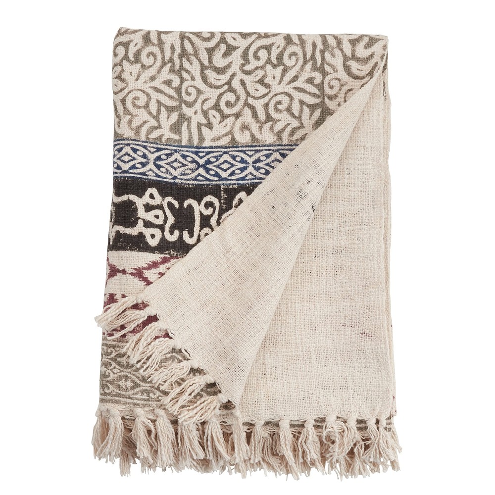 Bring a beautiful splash of color to your home décor with this stylish Block Print Design Throw Blanket. A lovely combination of vintage and boho style, this throw blanket will certainly liven up your space and bring texture and dimension to any seating area. Pair it with solid color throw pillows. Size: 47"x70" Design is not reversible Washed color palette, brings a vintage look. Tasseled edges, add a playful note. Material: 100% cotton + Care: dry clean Number of items: 1
