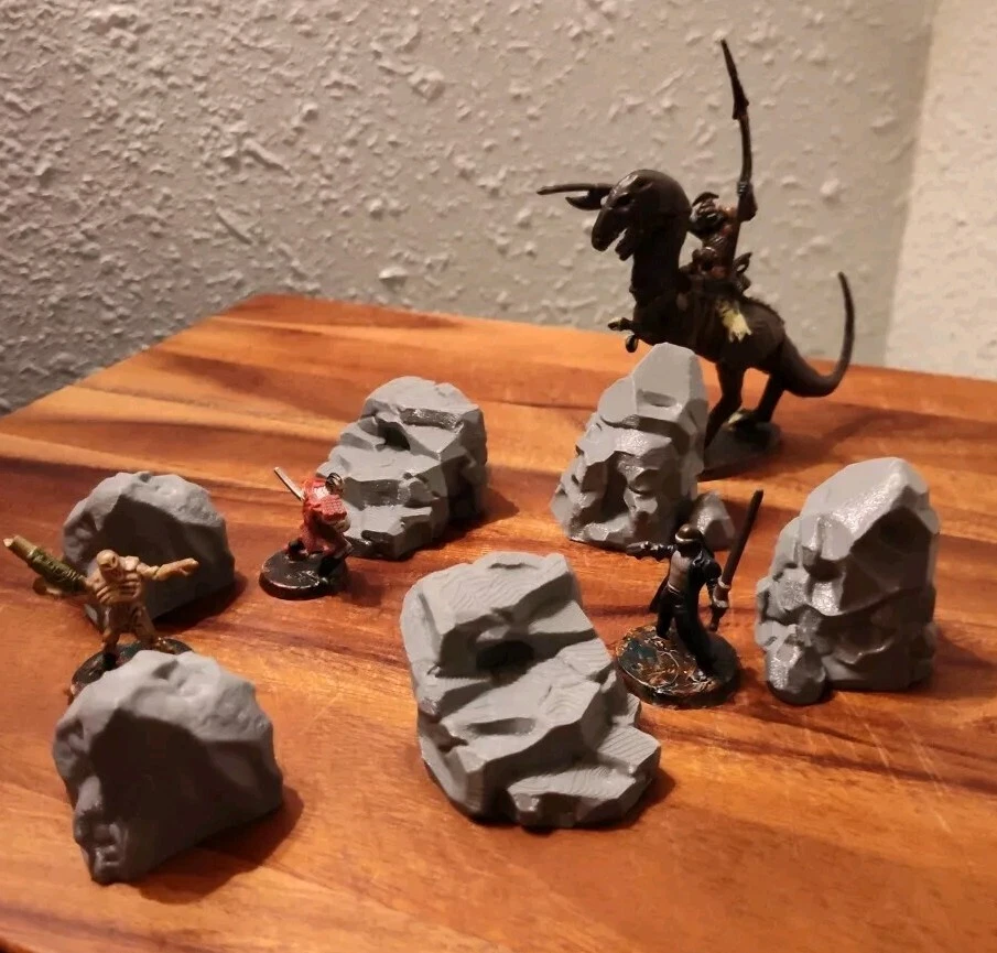 Enhance your tabletop miniature war game experience with these amazing Blockade Walls from EnderToys. These 3D printed and paintable walls are perfect for creating an immersive game environment. The set includes various designs to choose from, all in 28mm scale, making it ideal for miniature war games. With the brand name EnderToys, you can be assured of the quality of these blockade walls. They are perfect for adding depth and dimension to your game, and are sure to impress your fellow gamers. So why wait? Add these Blockade Walls to your collection today and take your miniature war game to the next level! Boulder rocks only. Heroscape figures not included, pictured for size comparison only. Please see photos of the items for a visual description.
