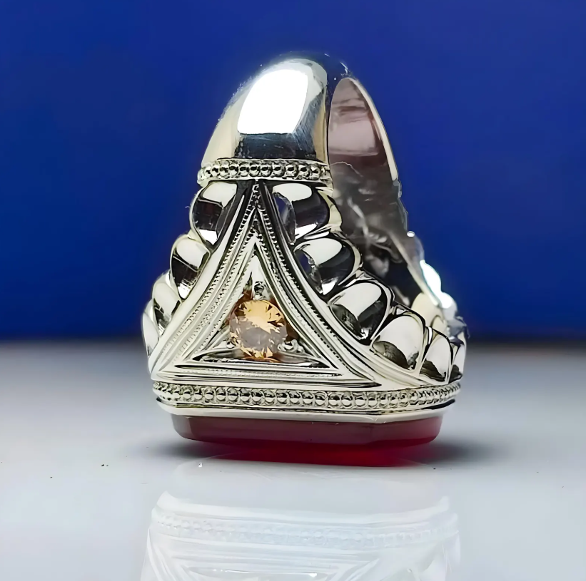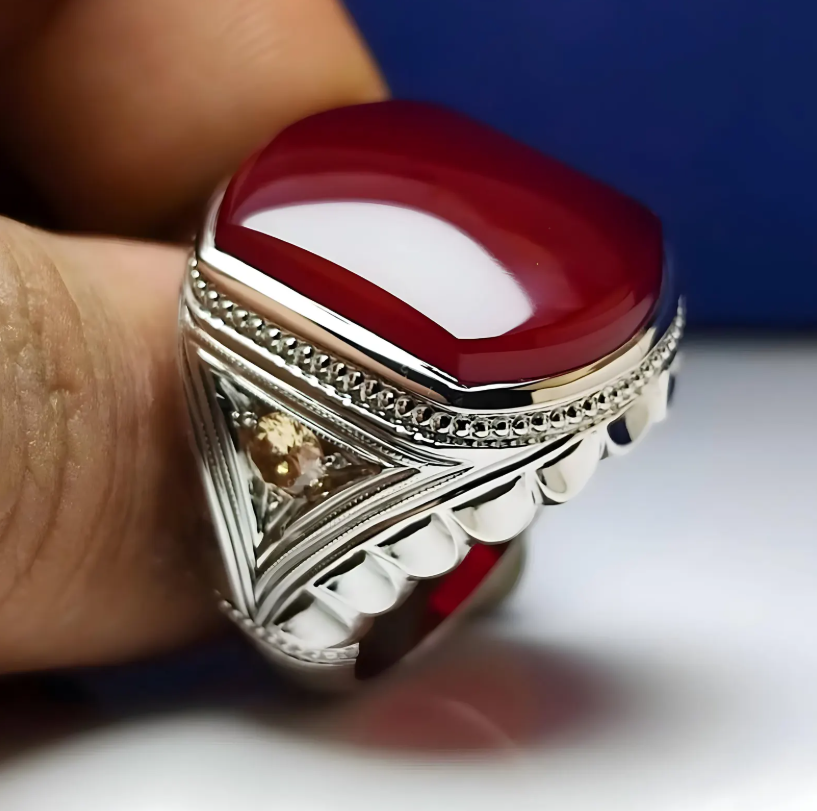 Yemeni Aqeeq Ring For Men, 925 Sterling Silver Natural Agate Ring, Shia Ring Gemstone: Natural Aqeeq/ Agate Side Stone: Cubic Zircon Metal: 925 Sterling Silver Gender : Men Delivery : Worldwide via UPS, FedEx, DPD UK, Aramex